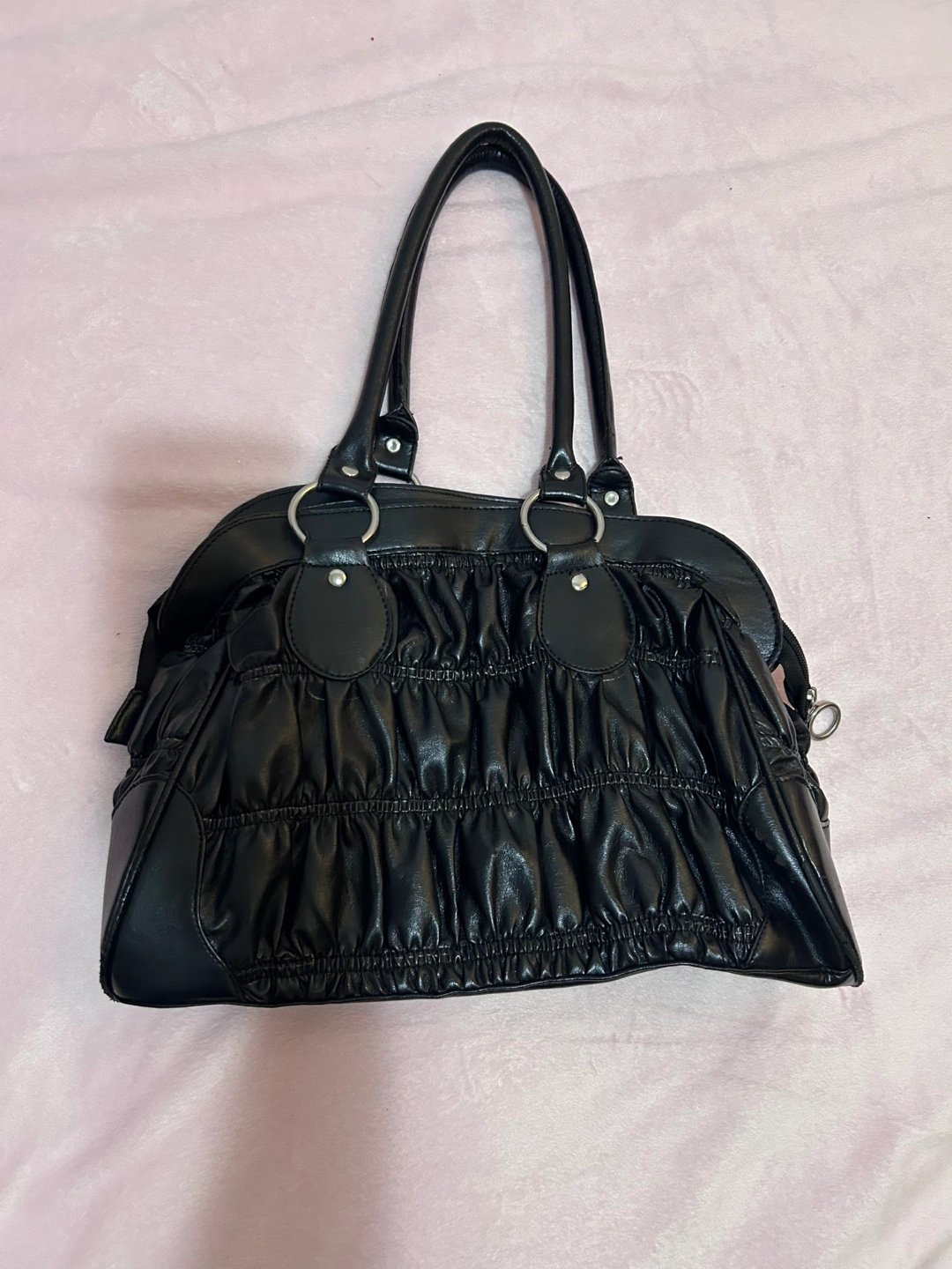 Medium sized black handbad/purse. Features silver-toned features. Two top handles. Zipper closure. Excellent for everyday use. Like New condition!