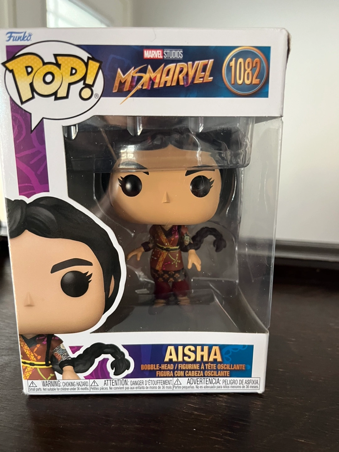 New Funko Pop! vinyl figure. Aisha from Marvel Studios' Ms. Marvel. Collectible figurine in box. Number 1082.