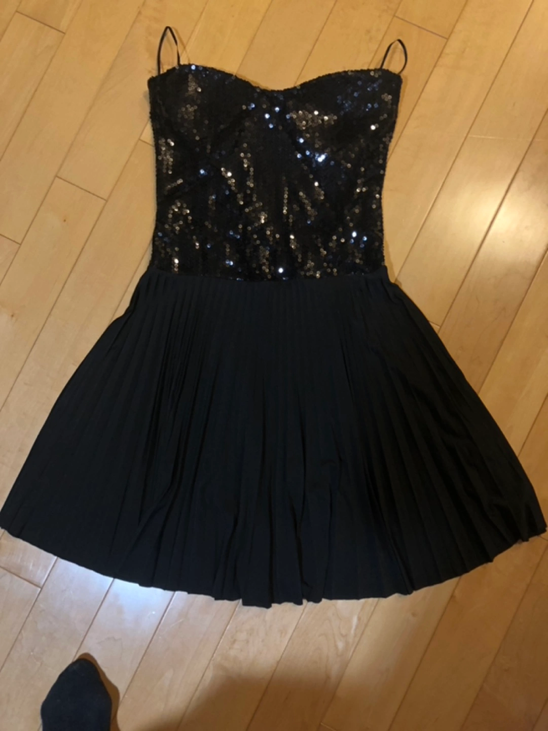 Stunning black mini dress. Sequined bodice and pleated skirt. Strapless design. Perfect for a night out. Pick up @ midtown or downtown, cash only🤗