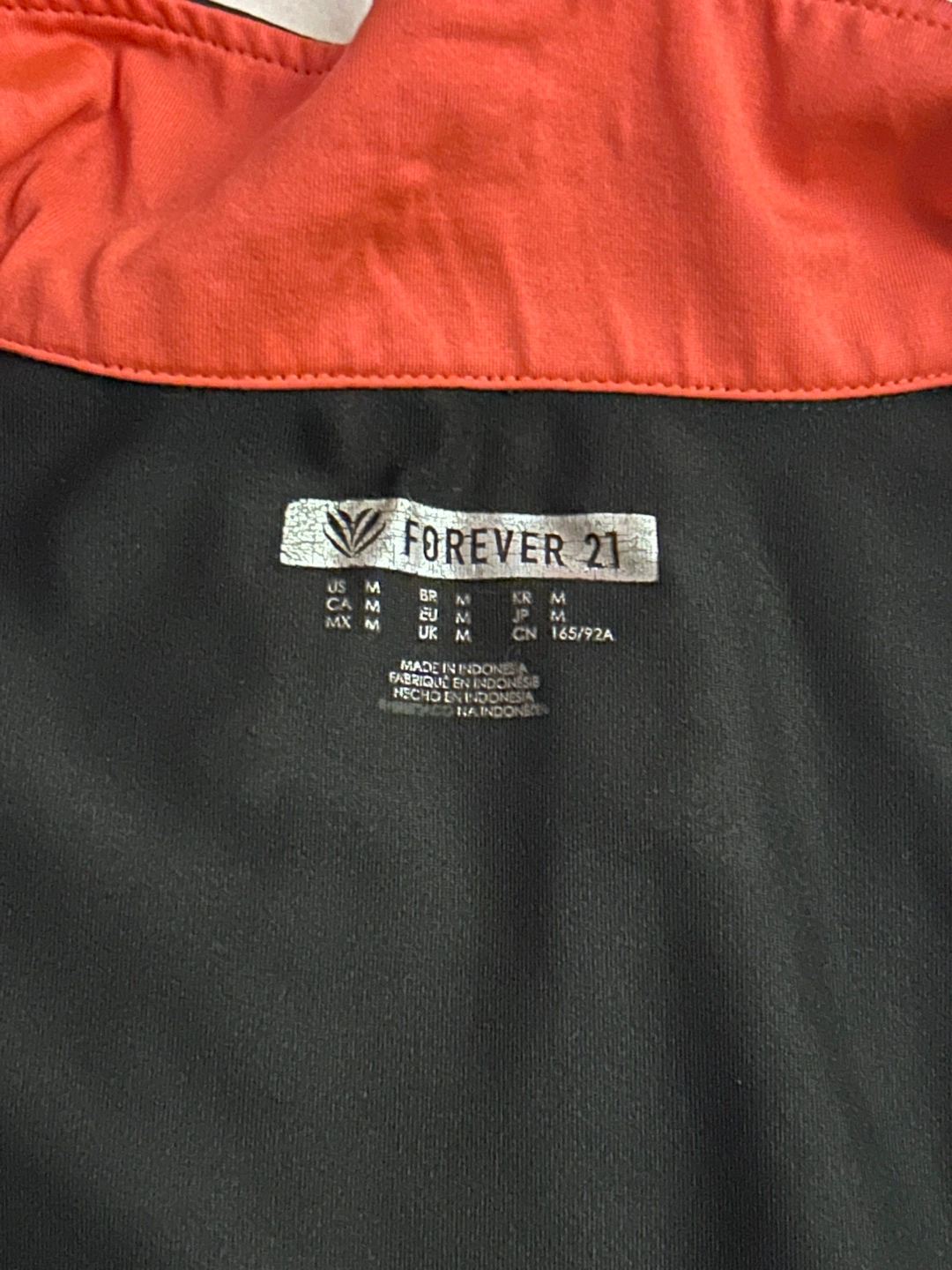 Women's black zip-up track jacket. Features coral accents and mesh panels. Size Medium. Perfect for going on a run or working out!