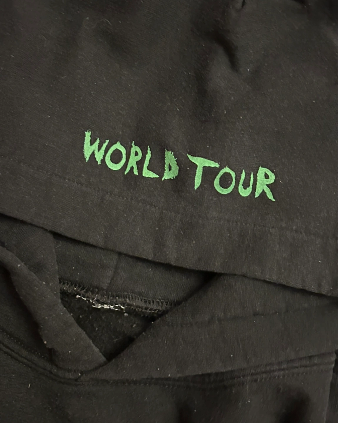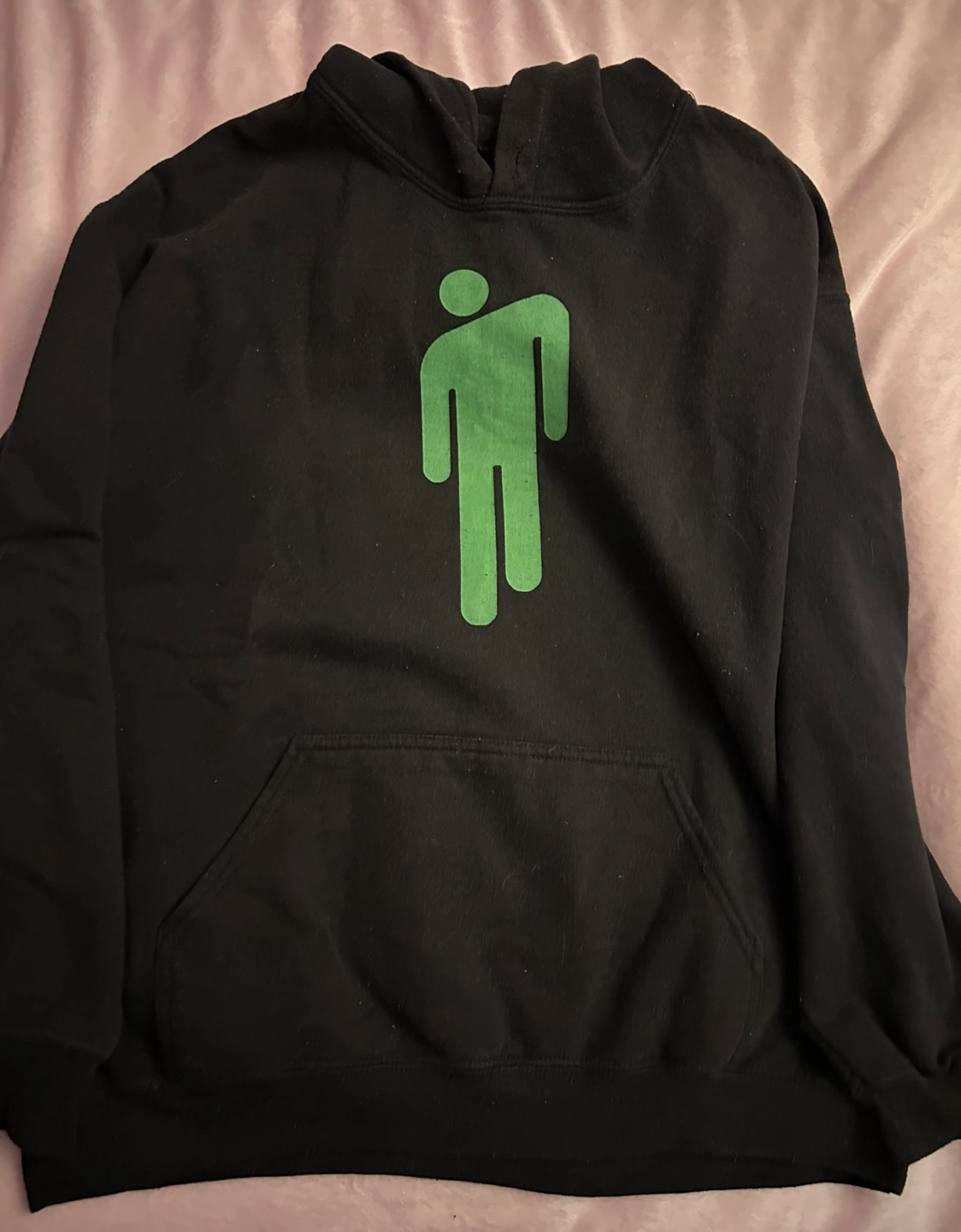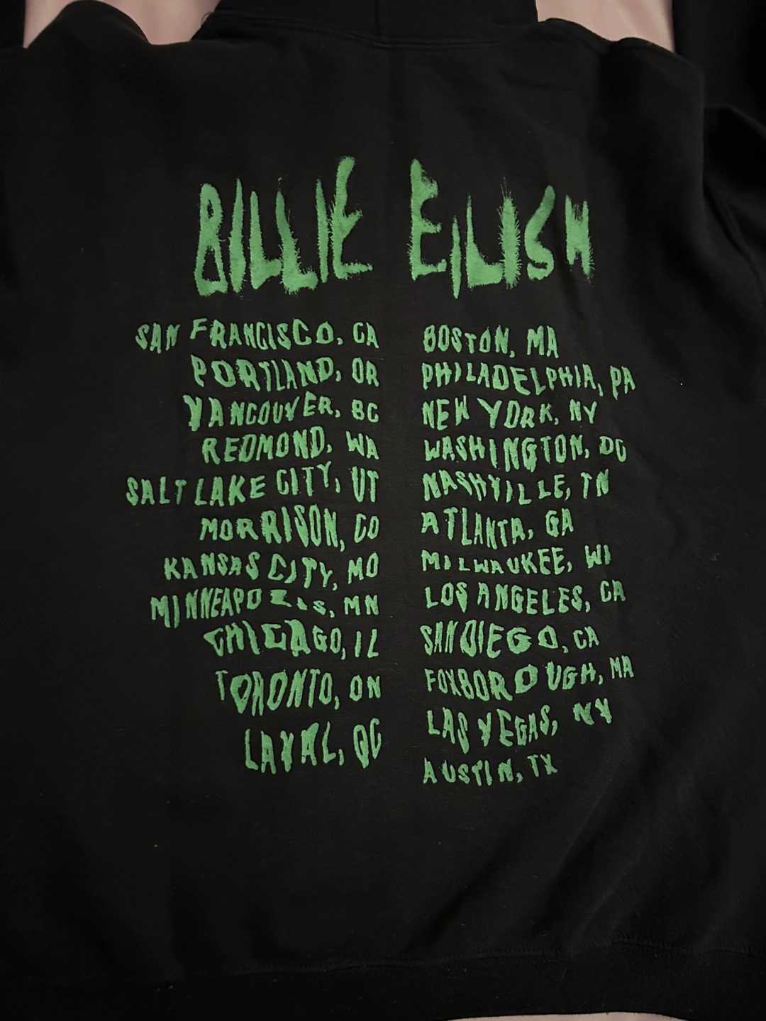 Black Billie Eilish hoodie. Features green logo and tour dates on the back. World tour text on the hood. Good condition.