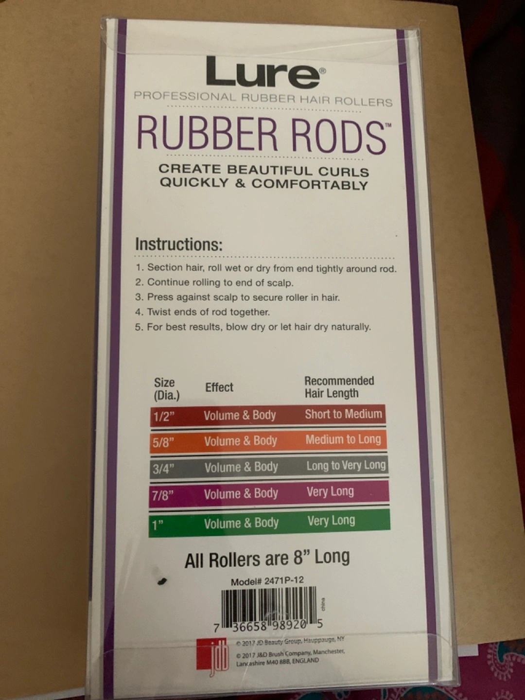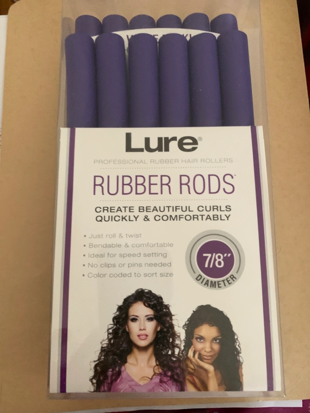 Set of purple rubber hair rollers. Create beautiful curls quickly and comfortably. Just roll & twist. Bendable for speed and comfortable styling. Ideal for speed setting. No clips or pins needed. Colour coded to sort size. All rollers are 8" long. Various sizes included.