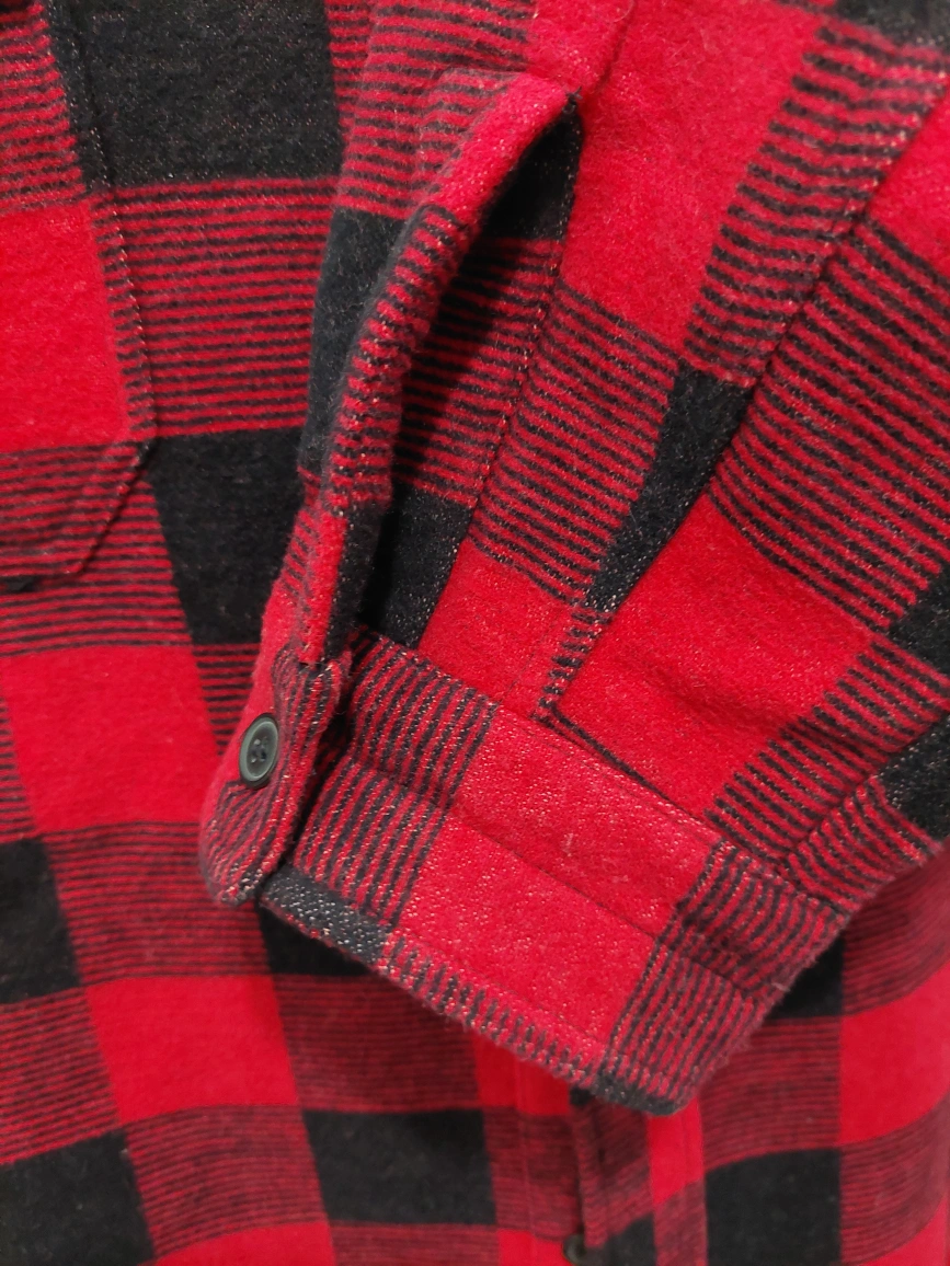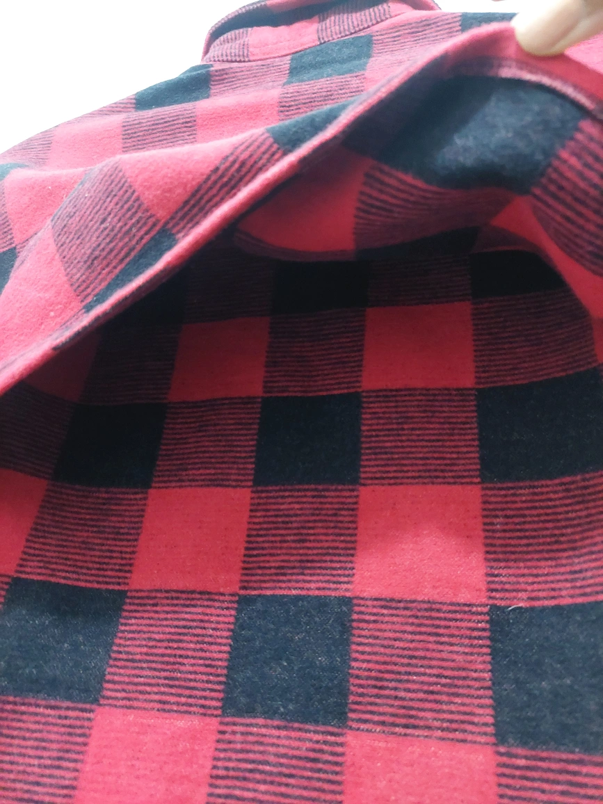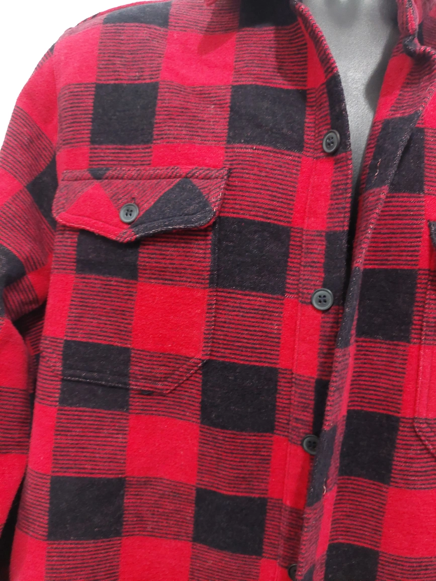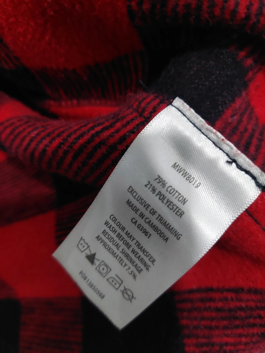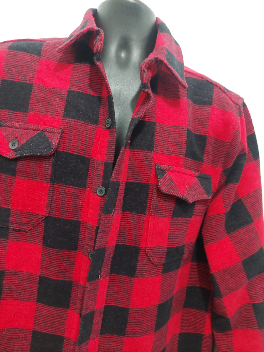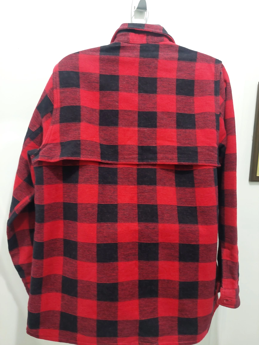 Oversize flannel coat/shirt. Long sleeve button-up. Red and black buffalo plaid. Two chest pockets. 79% cotton, 21% polyester. Made in Cambodia. Recently laundered. From smoke and pet - free home. Please browse through my other listings. Discount applies to bundling.