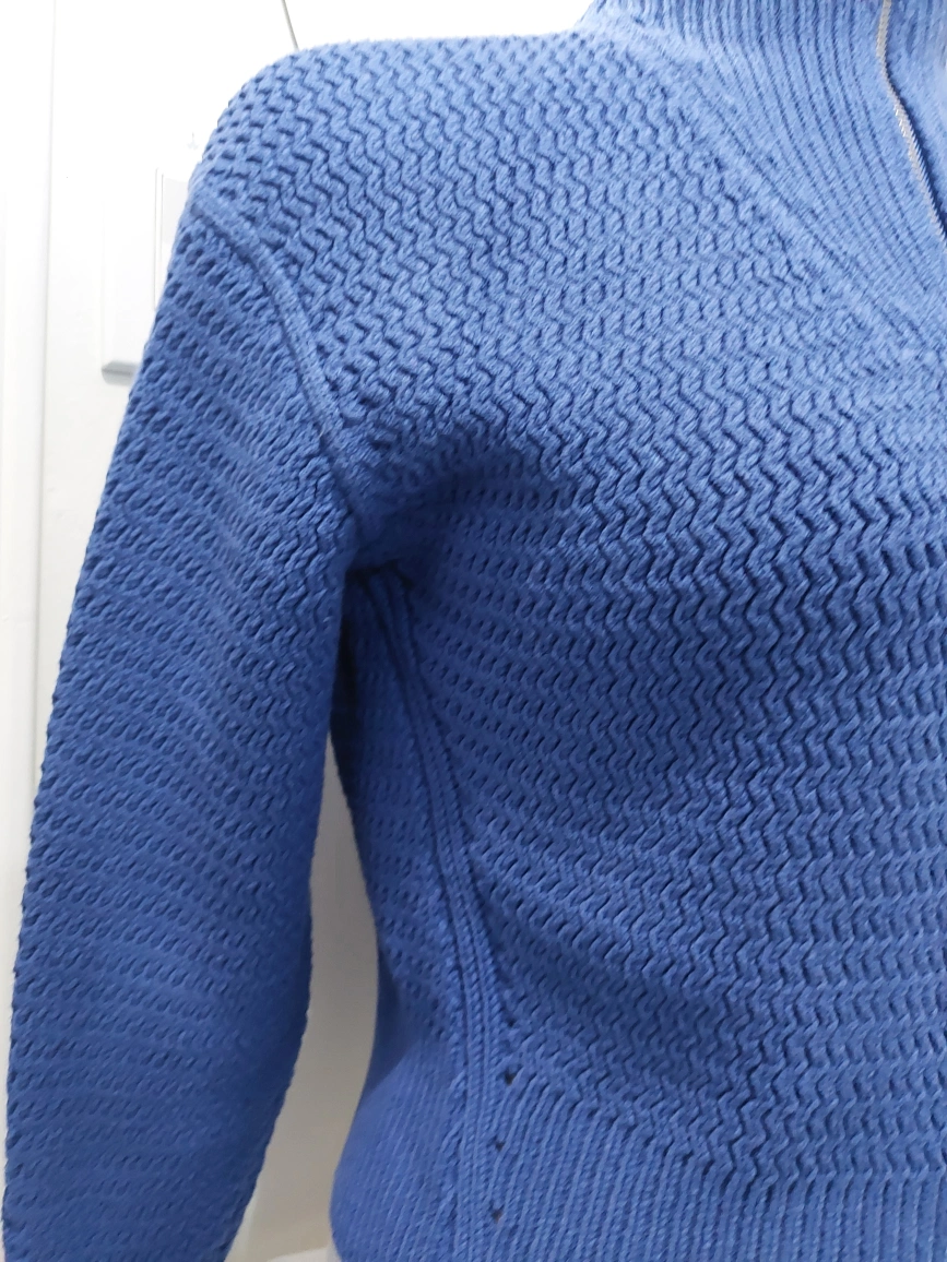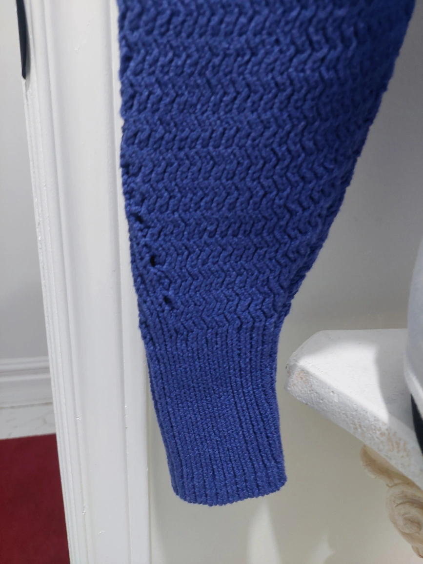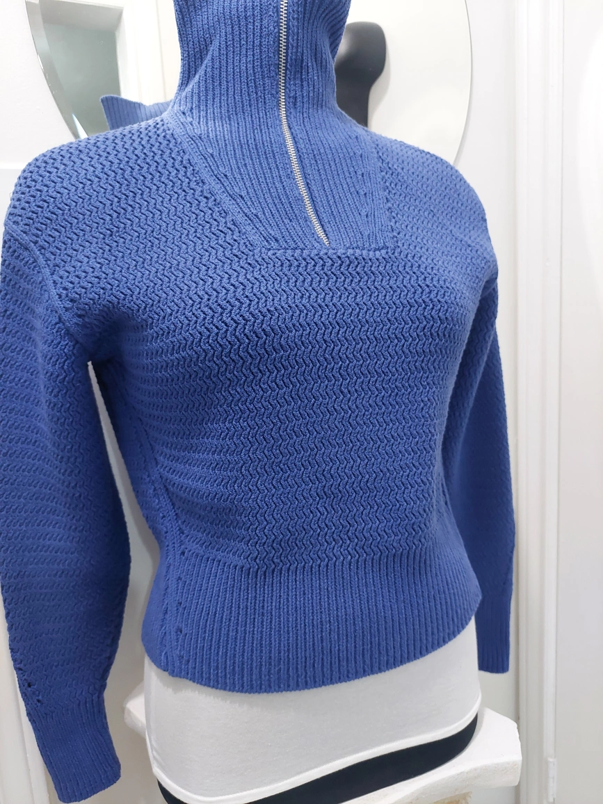 Beautiful royal blue sweater. Features a half zip and long sleeves. Unique textured knit. Excellent condition. 78% Cotton 22z% Polyamide. Recently laundered. From smoke and pet - free home. Please browse through my other listings. Discount applies to bundling.