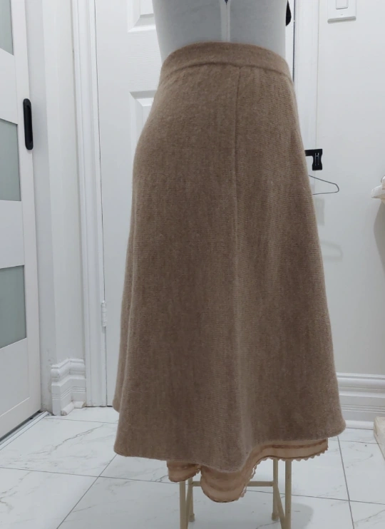 A-line skirt, beige colour. 50% alpaca, 50% merino wool. Made in China. Features a subtle A-line silhouette and a comfortable fit. Recently laundered. From smoke and pet - free home. Please browse through my other listings. Discount applies to bundling.