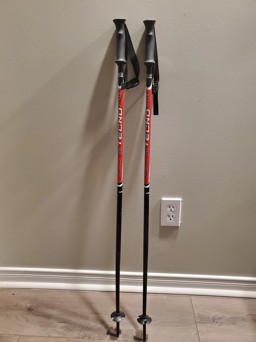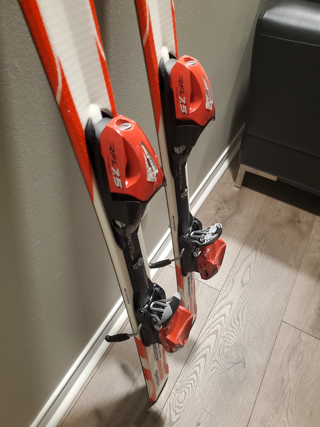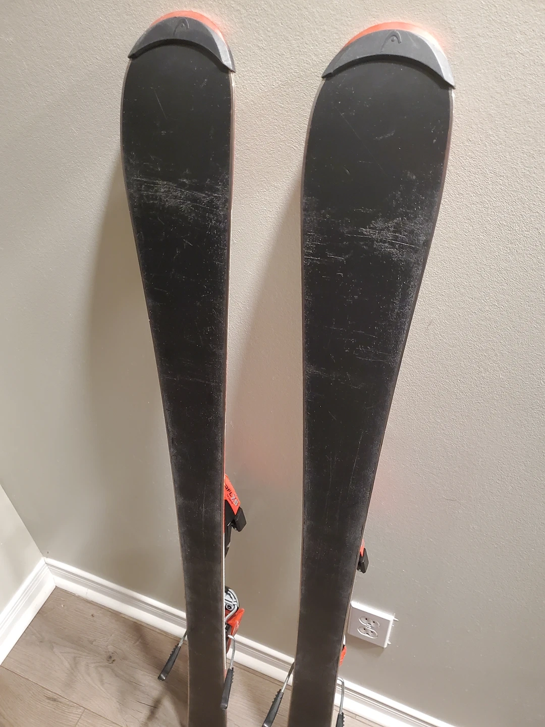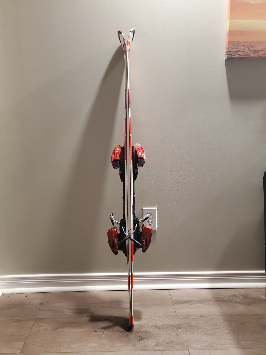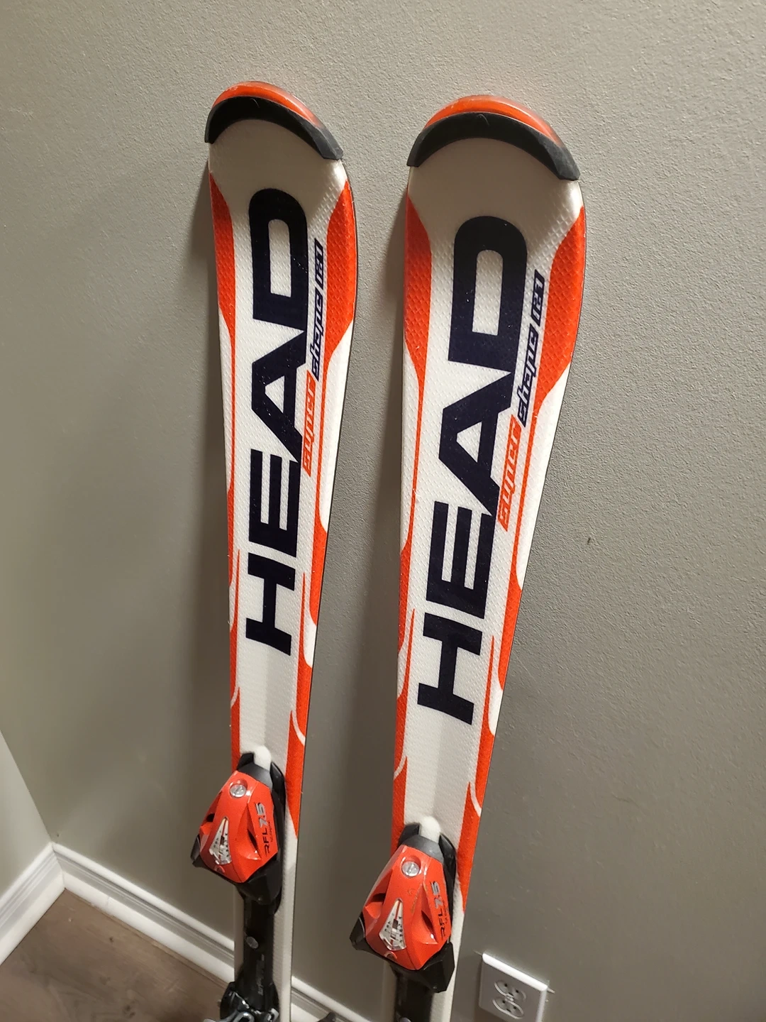 Selling a good condition pair of Head kids skis. 125cm tall. White and Red. Comes with a pair of red and white ski poles.