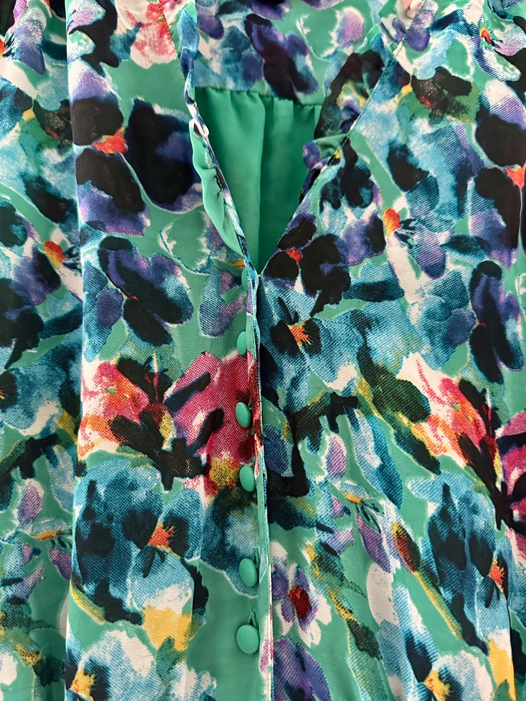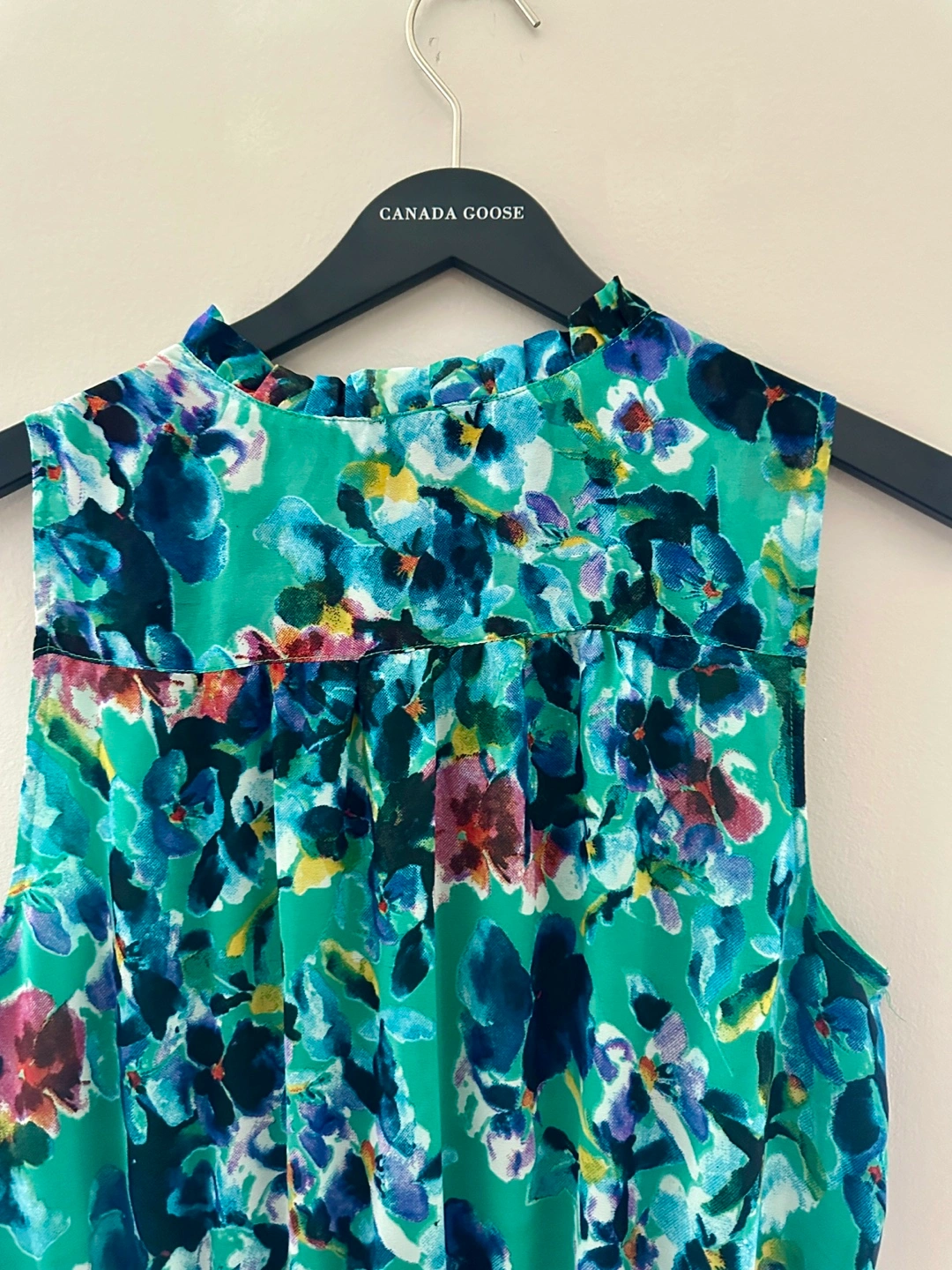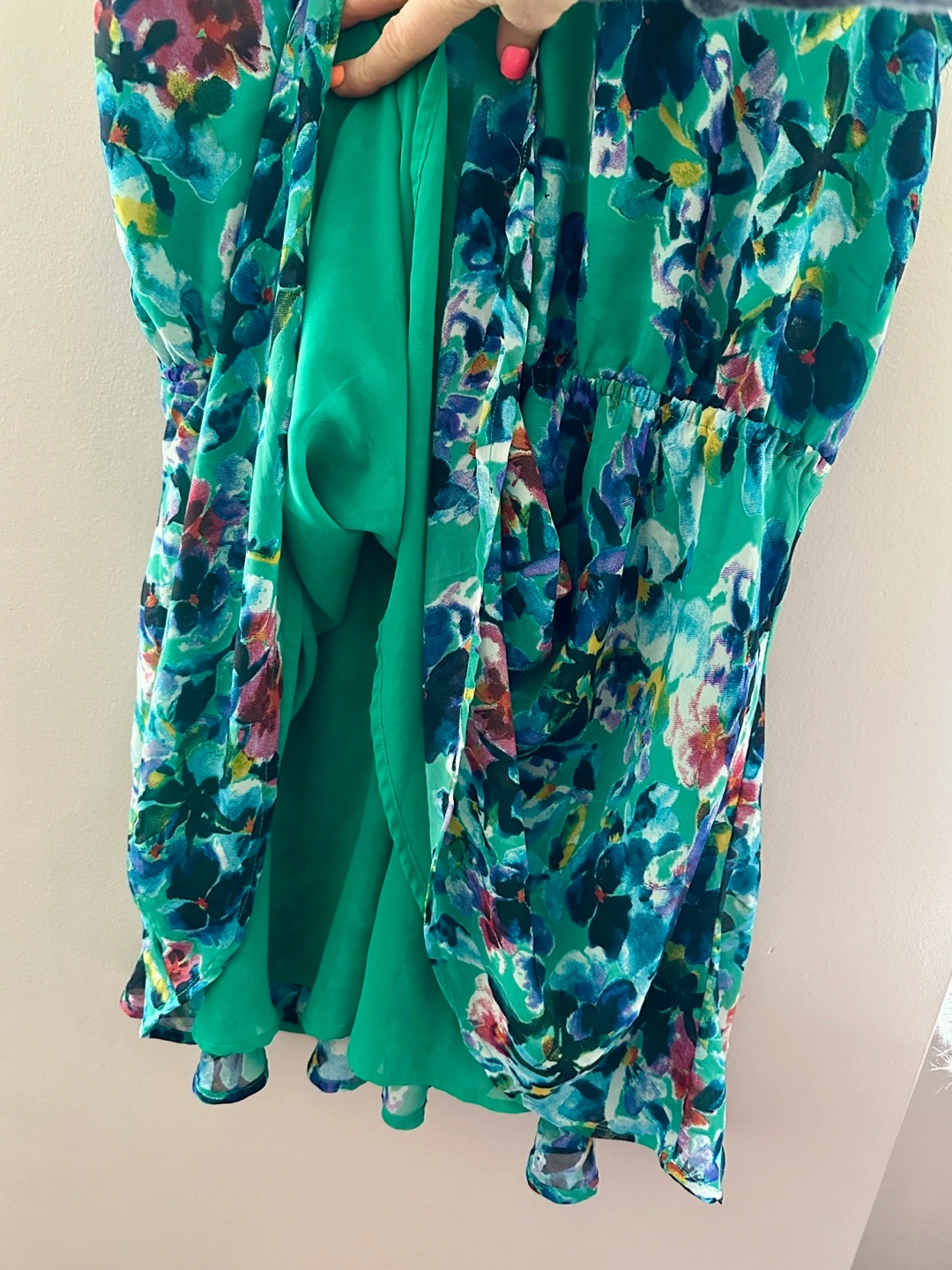 Beautiful sleeveless mini dress. Green floral print. Button closure. Size M.