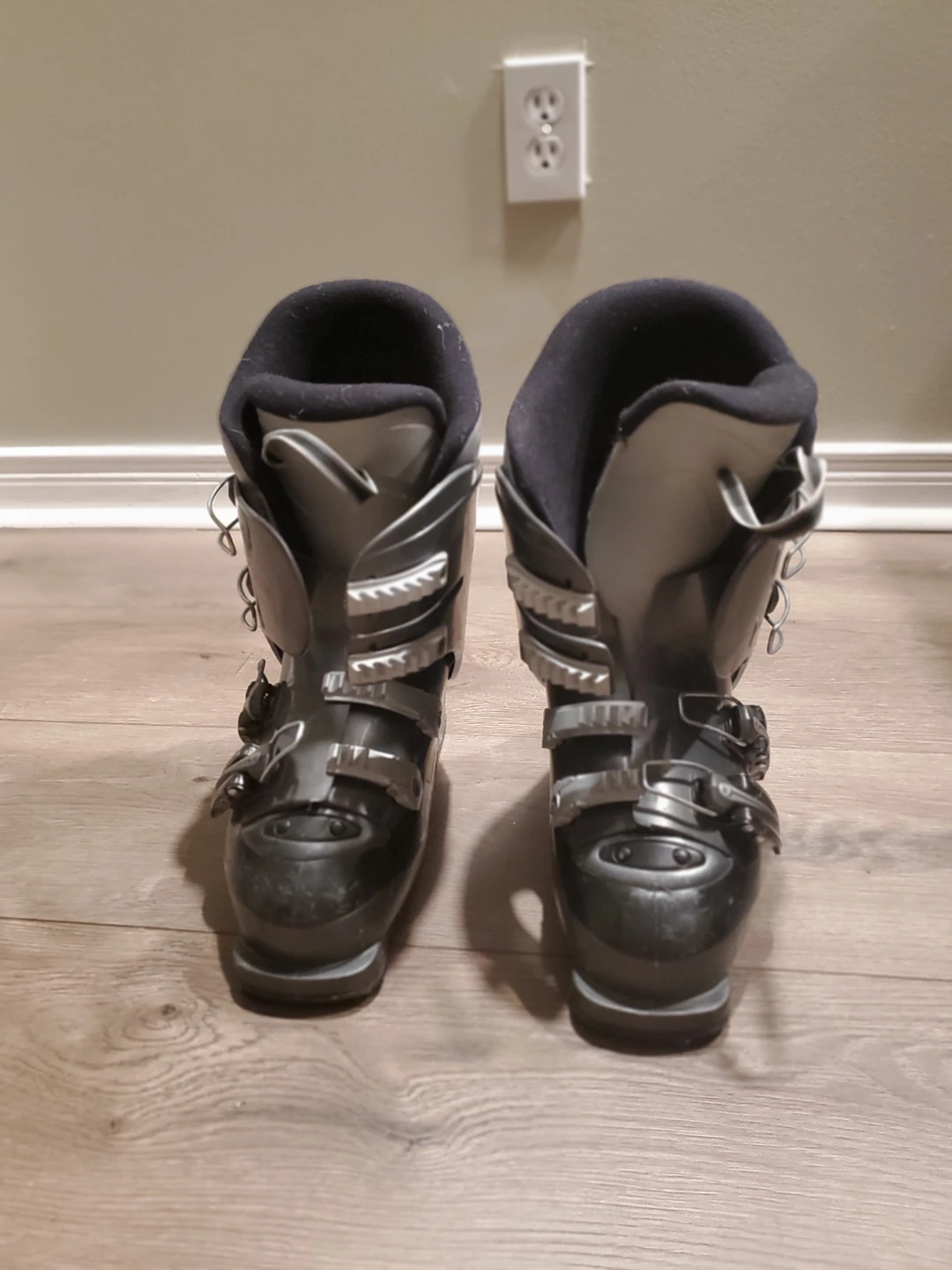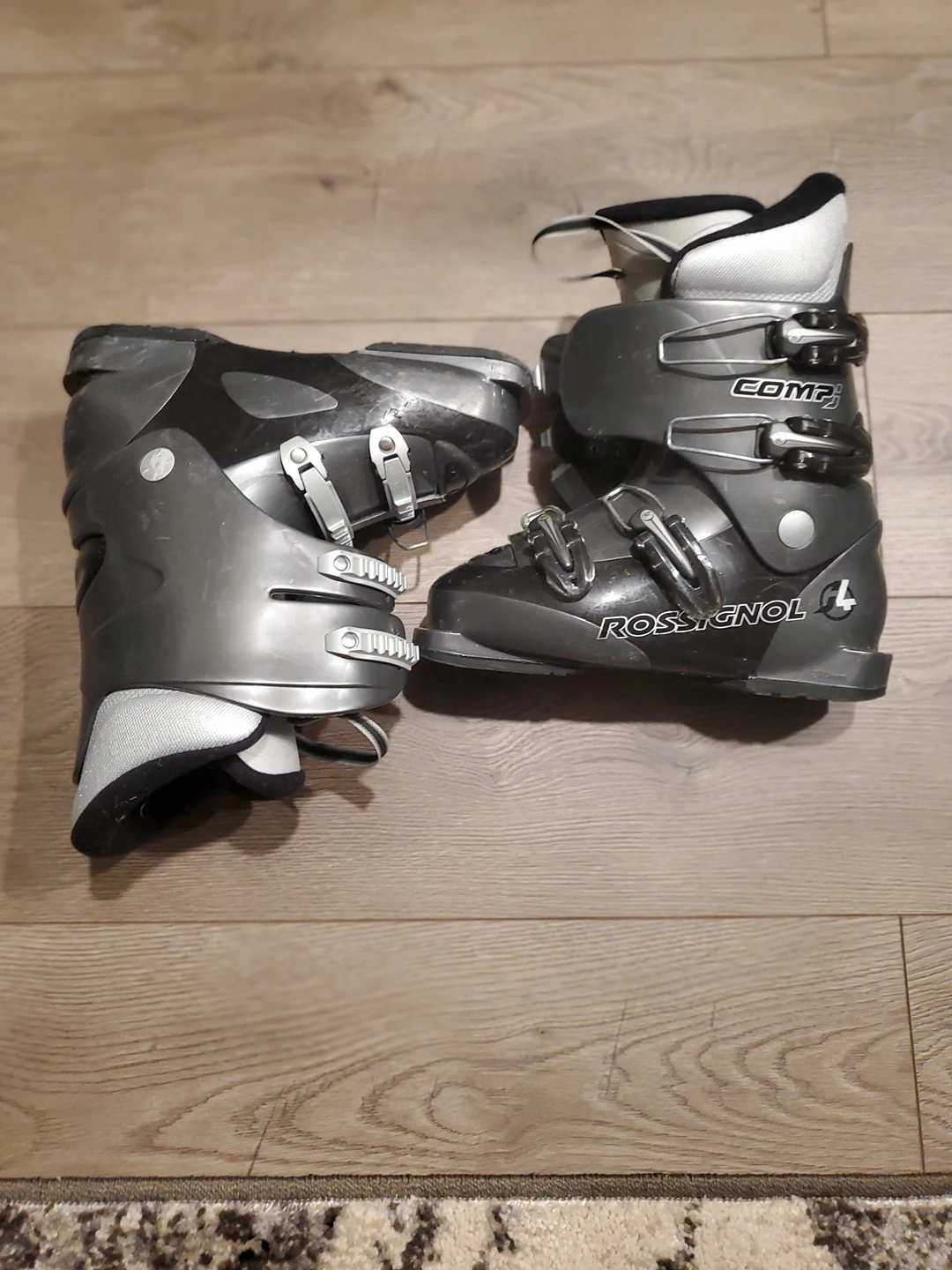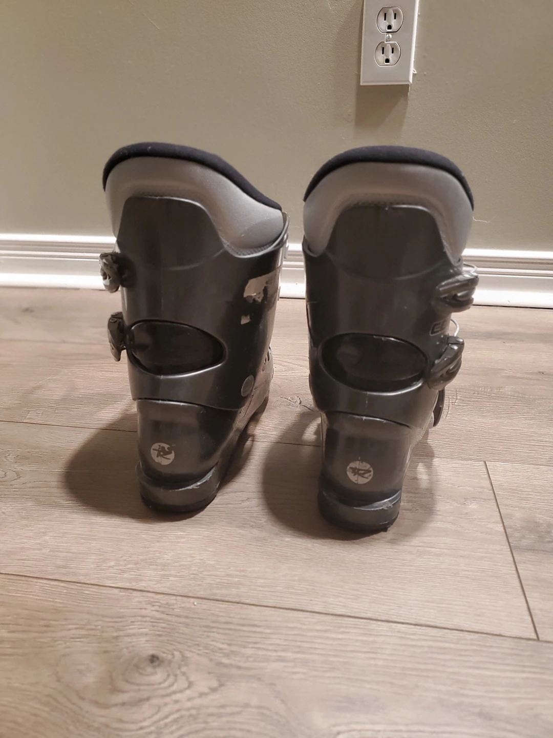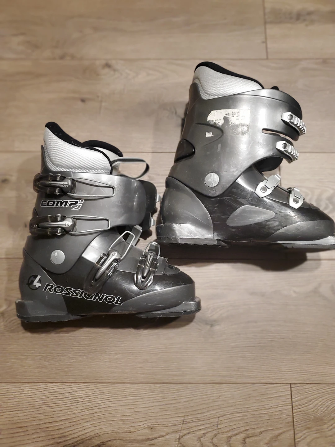 Selling a used pair of Rossignol kids ski boots. 230-235mm liner size and 275mm boot size. Grey and black colour.