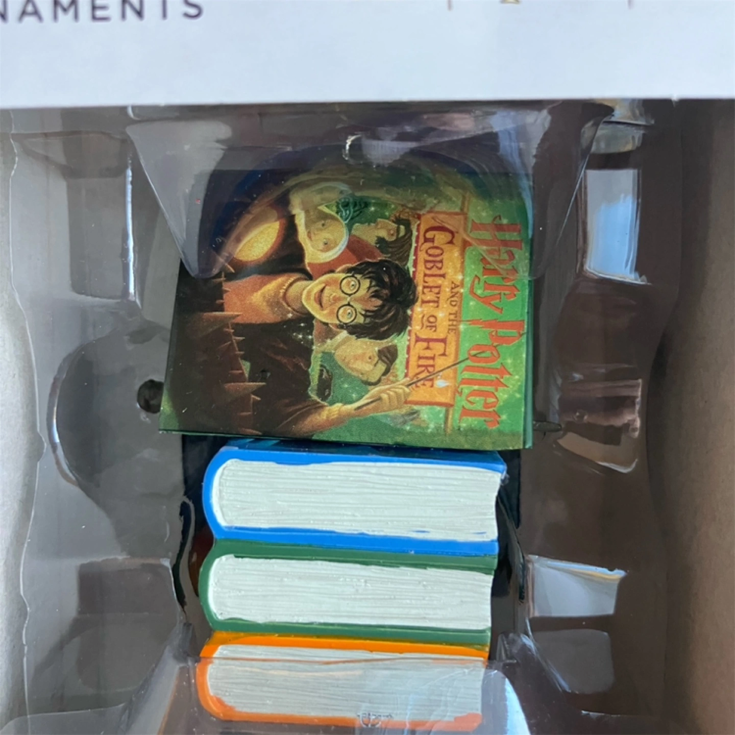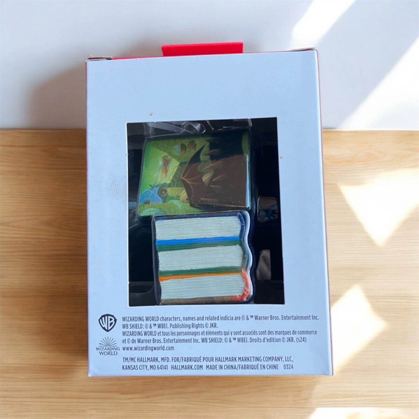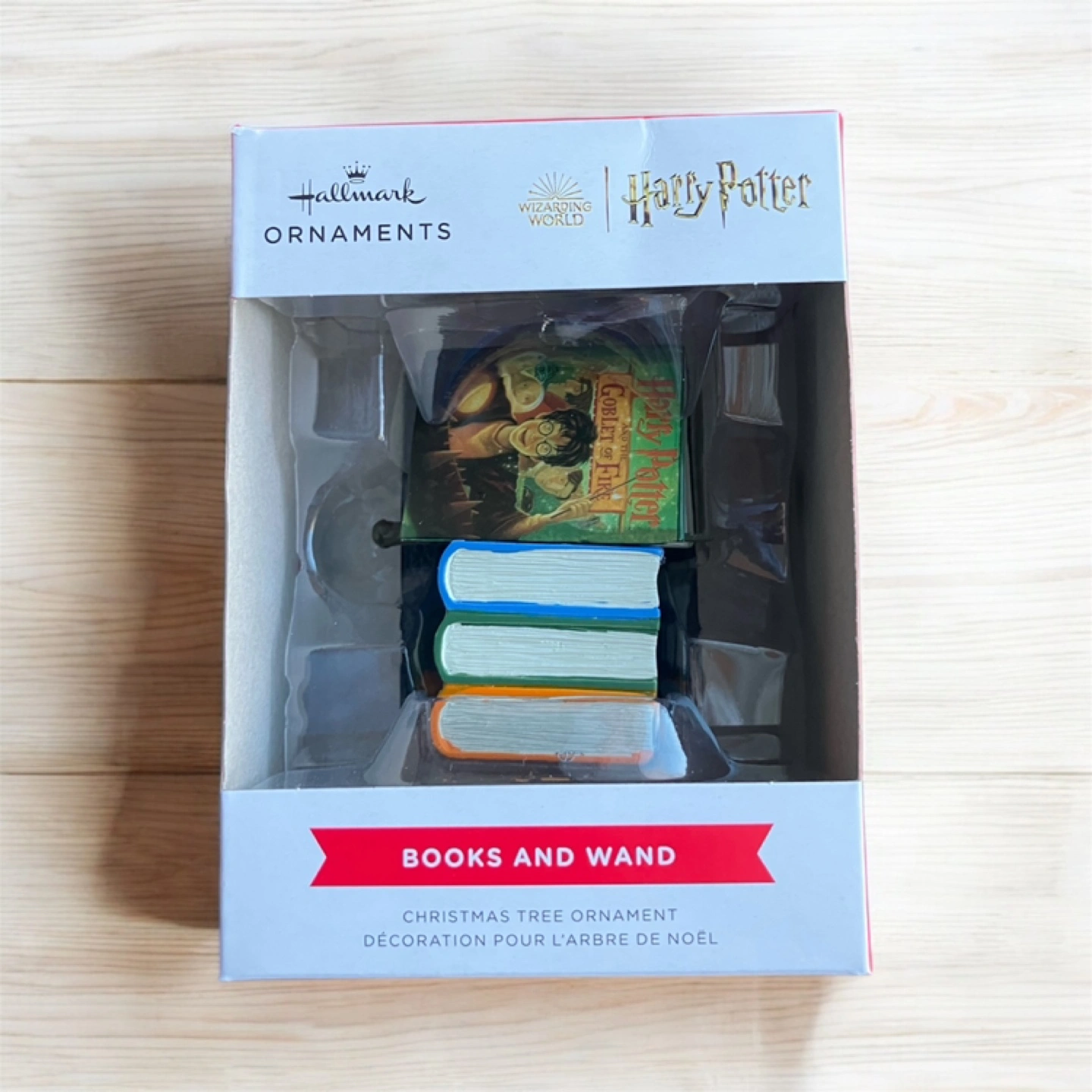 NWT Hallmark Harry Potter Books and Wand Christmas tree ornament. Relive the excitement of your favorite Harry Potter stories with this Christmas ornament that features four of the novels stacked with a wand. It's like bringing a bit of your bookshelf to the tree! Great Christmas gift idea for fans of the Harry Potter books and movies. Resin ornament is ready to hang on your Christmas tree with a white ribbon hanger attachment. Measures approximately: 2.42" x 2.77" x 1.84" I ship using recycled material within my home to reduce waste. The package will be wrapped with care if requested or deliver for a fee