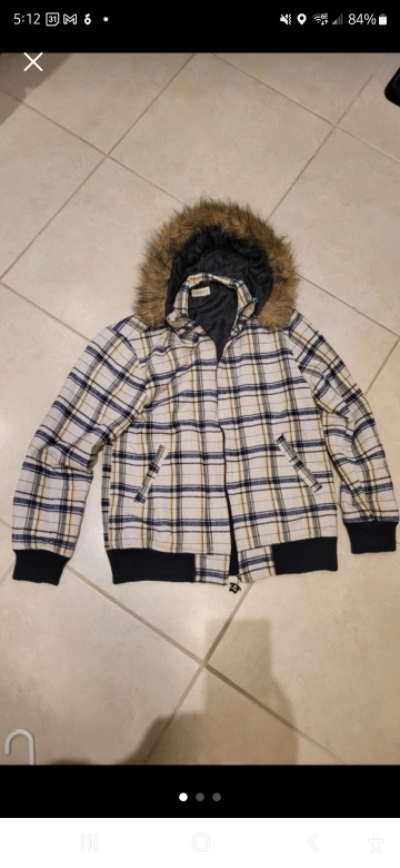 Features a plaid pattern, faux fur-lined hood, and zipper closure. Lined interior. 65% cotton 35% polyester xl Asian size=L us size zip up *lightly used * smoke free home