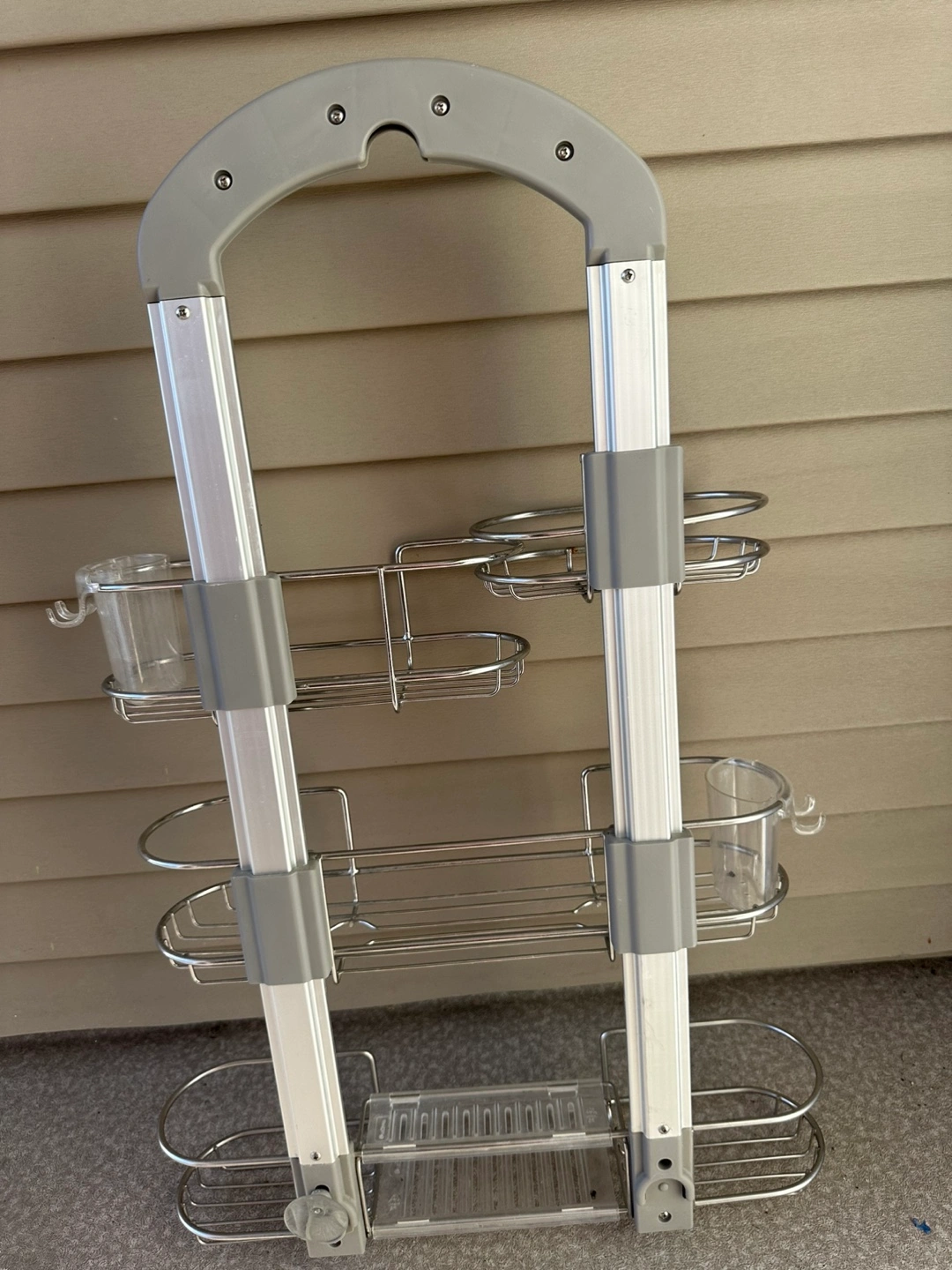 Multi-tiered shower caddy. Great for organizing shower essentials.