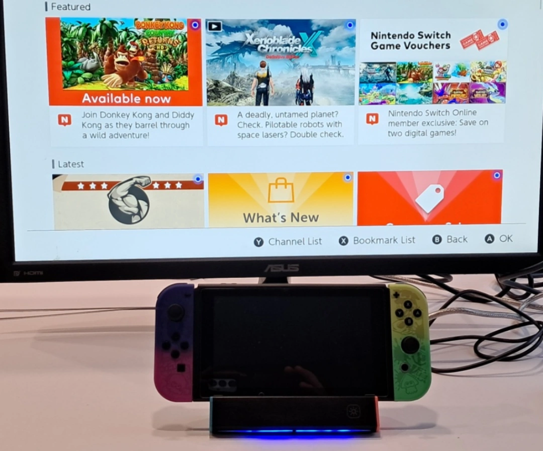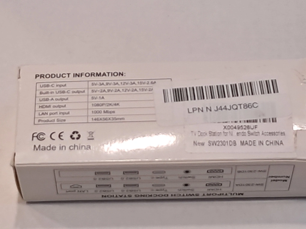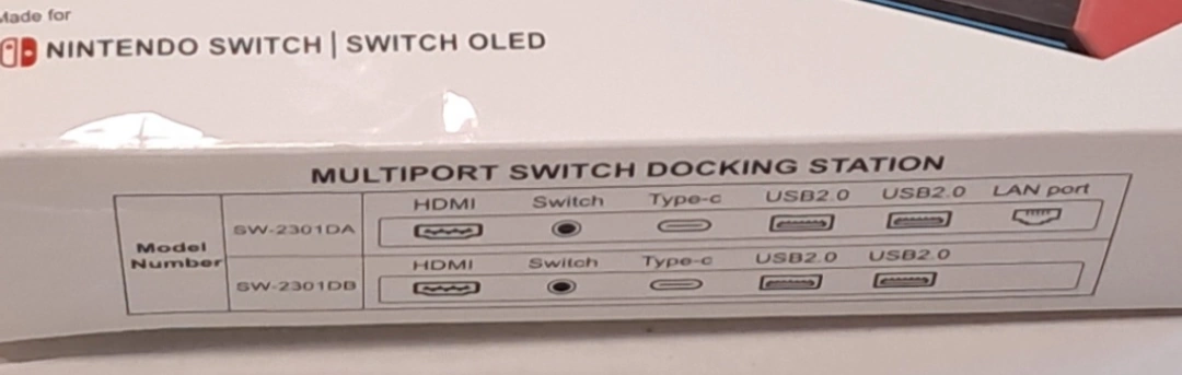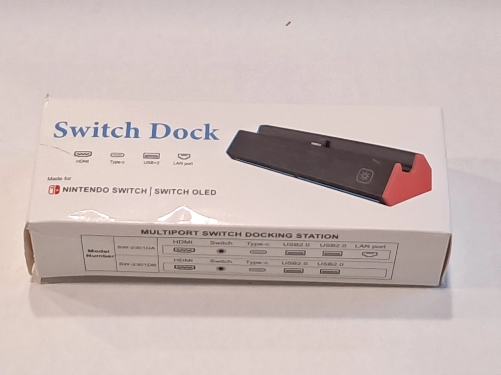 Compact docking station. Features HDMI, USB-C, USB 2.0, and LAN ports. Works with Nintendo Switch and Switch OLED models. Selling dock only no power cord or hdmi