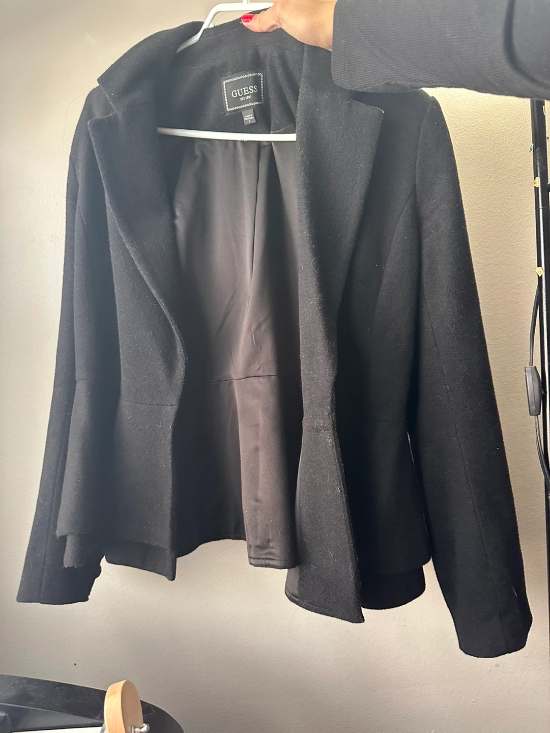 Women's black peacoat. Size large. Classic style. Good for fall and winter. Simple and elegant.