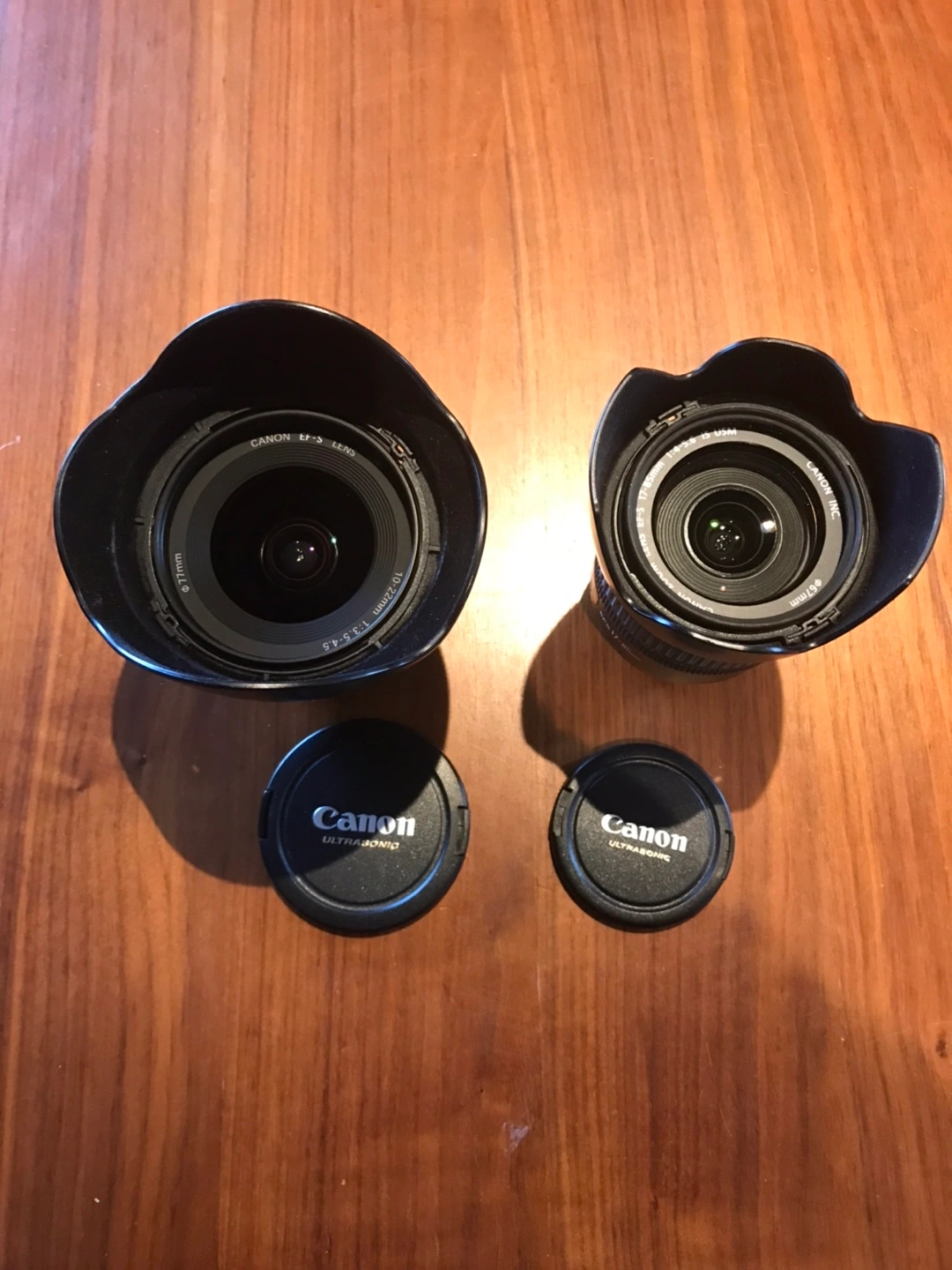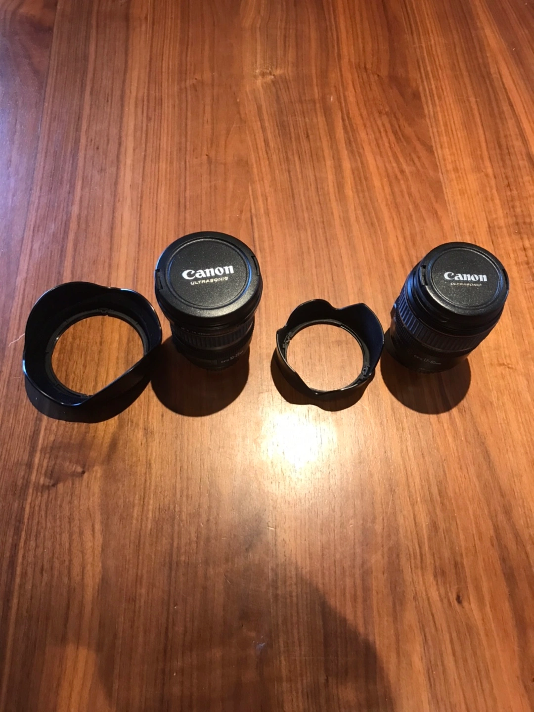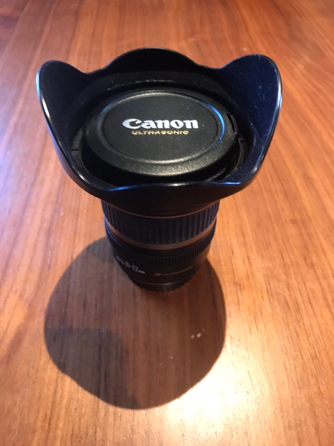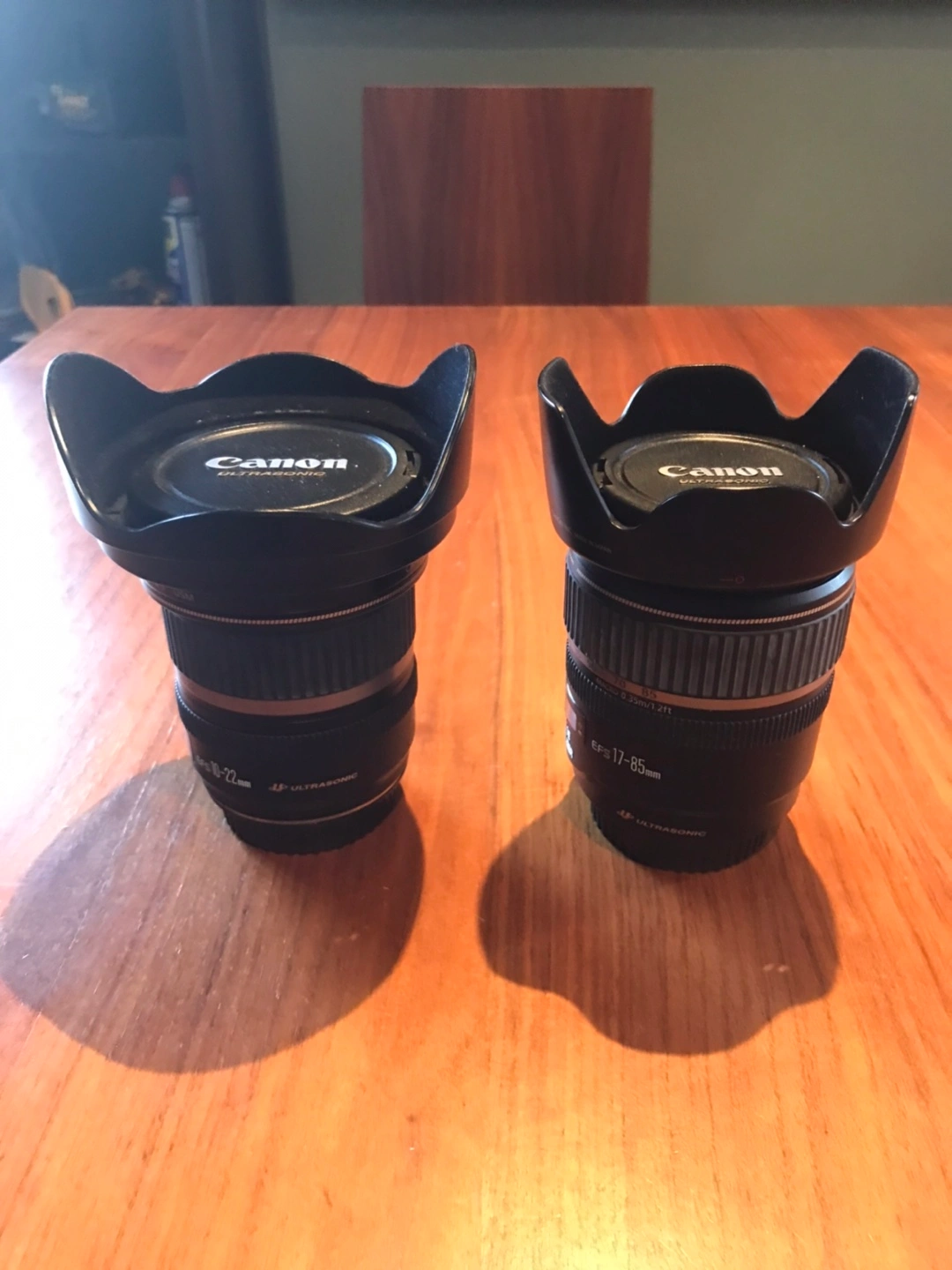 Canon Zoom EF-S 17-85mm f/4-5.6 IS USM & EF-S 10-22mm f/3.5-4.5 wide angle USM lenses. Both equipped with UV filters. Each lens includes a lens hood and lens cap. Ultrasonic autofocus. *These Lenes for Canon 7D or all EOS Rebel cameras. *17-85mm f/4-5.6 paid $695+tax=$785 *10-22mm f/3.5-4.5 paid $845+tax=$954 new. $450 for both lenses. Now $250 *Pick up & cash only. Reason: don’t need it anymore.