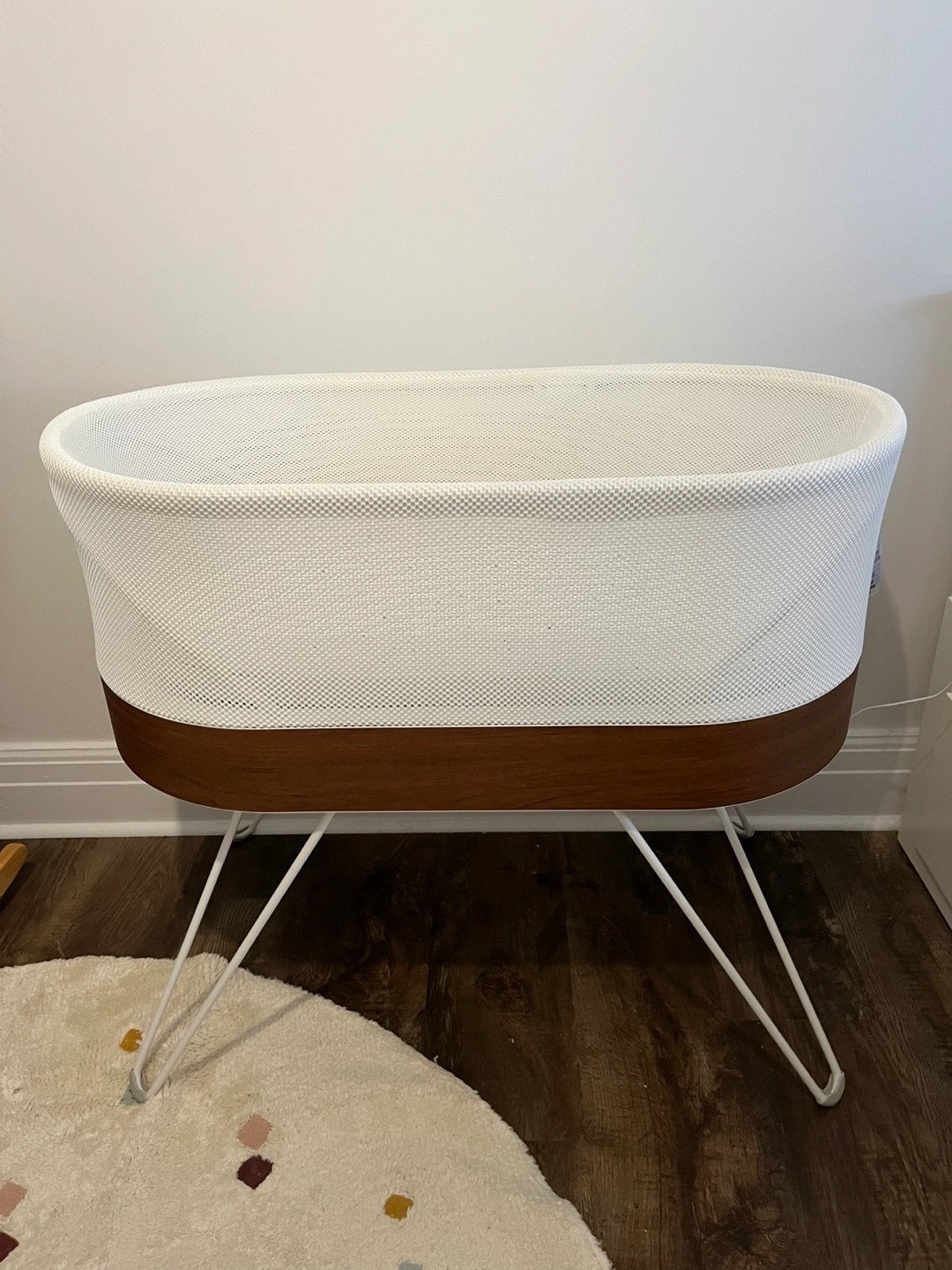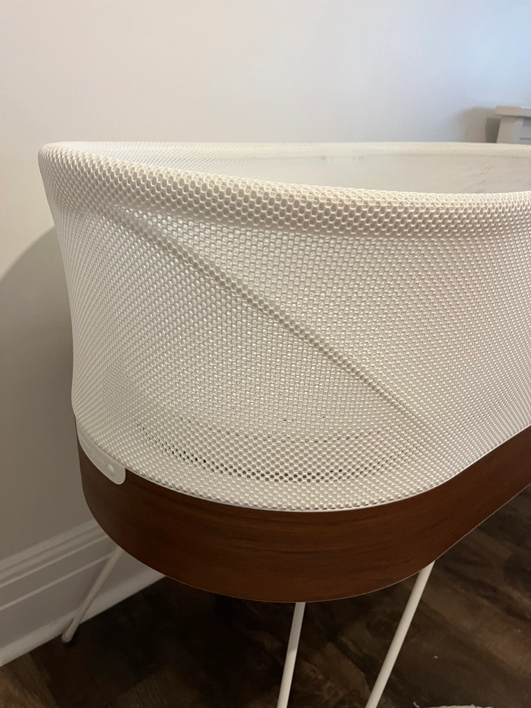SNOO is the safest and most effective baby bed ever made! It helps boost a baby's sleep and often can calm a baby's fussing by quickly responding with special white noise and jiggly rocking. It can even reduce the need for sleep training. SNOO’s unique 5-second swaddle is easy to use and keeps babies safely on the back (when used as directed). Altogether, SNOO gives new parents the precious gift of rest...and peace of mind. Shop the SNOO brand page to see their selection of 5-second swaddles. The 5 S's The 1st S: Swaddle Swaddling recreates the snug packaging inside the womb and is the cornerstone of calming. It decreases startling and increases sleep. And, wrapped babies respond faster to the other 4 S’s and stay soothed longer because their arms can’t wriggle around. The 2nd S: Side or Stomach Position The back is the only safe position for sleeping, but it’s the worst position for calming fussiness. This S can be activated by holding a baby on their side, on their stomach or over your shoulder. You’ll see your baby mellow in no time. The 3rd S: Shush Contrary to myth, babies don’t need total silence to sleep. In the womb, the sound of the blood flow is a shush louder than a vacuum cleaner! But, not all white noise is created equal. Hissy fans and ocean sounds often fail because they lack the womb’s rumbly quality. The best way to imitate these magic sounds is white noise. The 4th S: Swing Life in the womb is very jiggly. (Imagine your baby bopping around inside your belly when you jaunt down the stairs!) While slow rocking is fine for keeping quiet babies calm, you need to use fast, tiny motions to soothe a crying infant mid-squawk. The 5th S: Suck Sucking is “the icing on the cake” of calming. Many fussy babies relax into a deep tranquility when they suck. Many babies calm easier with a pacifier. How Do the 5 S’s Relate to Another Favorite S – Sleep? The keys to good sleep are swaddling and white noise. So Happiest Baby invented SNOO, an innovative baby bed based on the 5 S’s that helps calm babies and ease them into sleep. Parents especially love when it quickly calms babies for those 2 a.m. wakings! Sleep Adds 1+ hours a night by automatically responding with increasing levels of white noise + motion to quickly soothe fussing Newborns start sleeping better in 1-2 days…babies older than 6 weeks within 3-7 days Safety Only bed that keeps your baby safely on the back—all night long—as recommended by the American Academy of Pediatrics Use until baby is 6 months old or until baby can get up on hands and knees. Max. baby weight: 25 lbs SNOO Organic Cotton Sack White attaches to safety clips to prevent risky rolling Mobile App Easy to customize with gentle preemie/newborn setting and weaning option to transition baby to crib Tracks your baby’s progress in sleep log Alerts parents if the baby needs more attention (due to hunger or discomfort) Product Specs: Bed size: 30” L × 16” W × 32” H with legs; Weight: 38 lb Advanced audio processing to distinguish cries from ambient sounds 3 specially engineered white-noise sounds to calm crying and enhance sleep Custom motor optimized for quiet and reliability What’s included in the box? SNOO Bed 4 Legs Power adapter Power cable holder Mattress