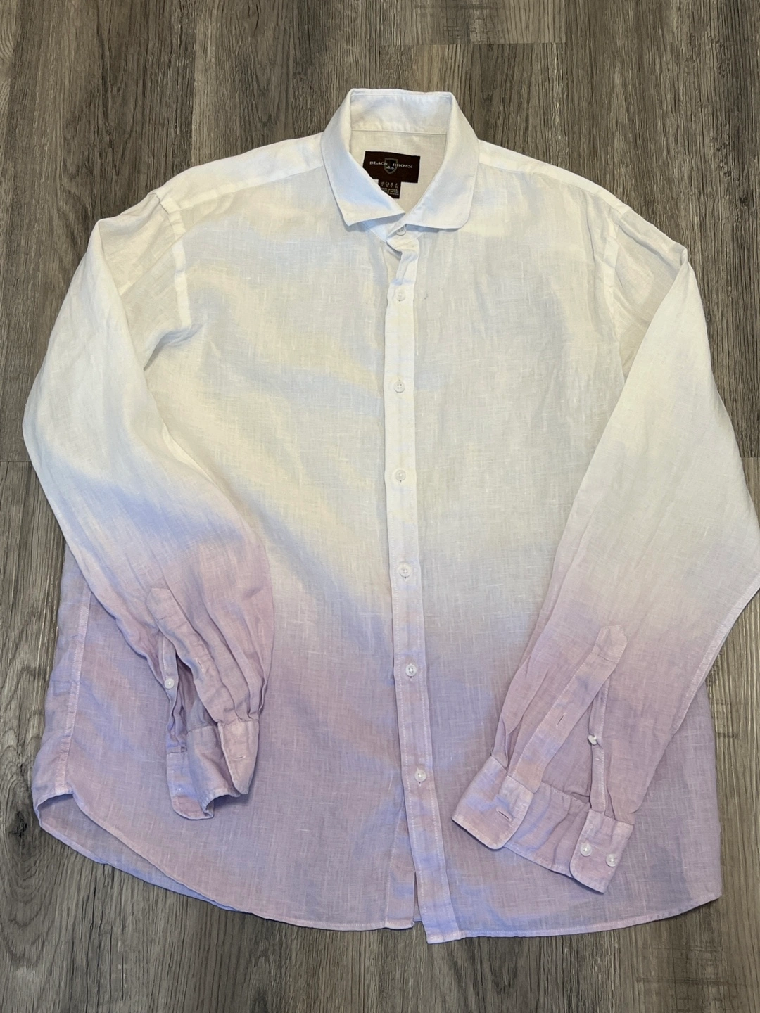 Men's long sleeve button-up shirt. Ombre design. Linen material. Relaxed fit. Large