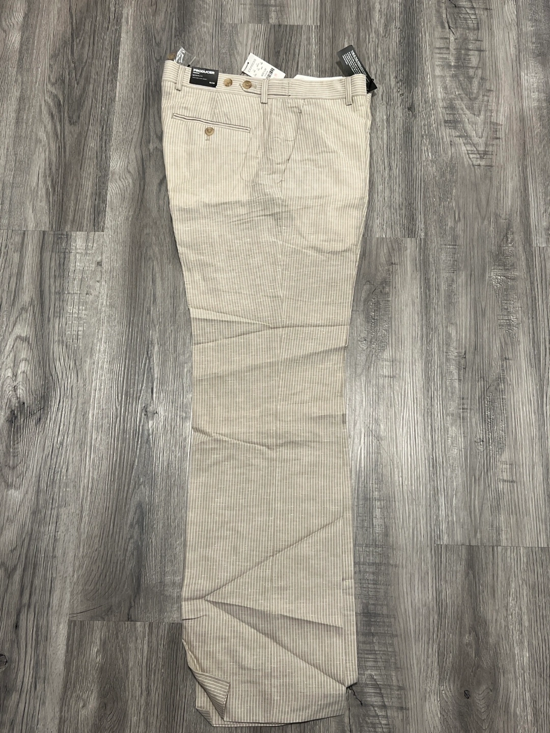 New with tags, beige pinstripe flat-front trousers. Classic style, straight leg. Perfect for a smart casual look. New with tags
