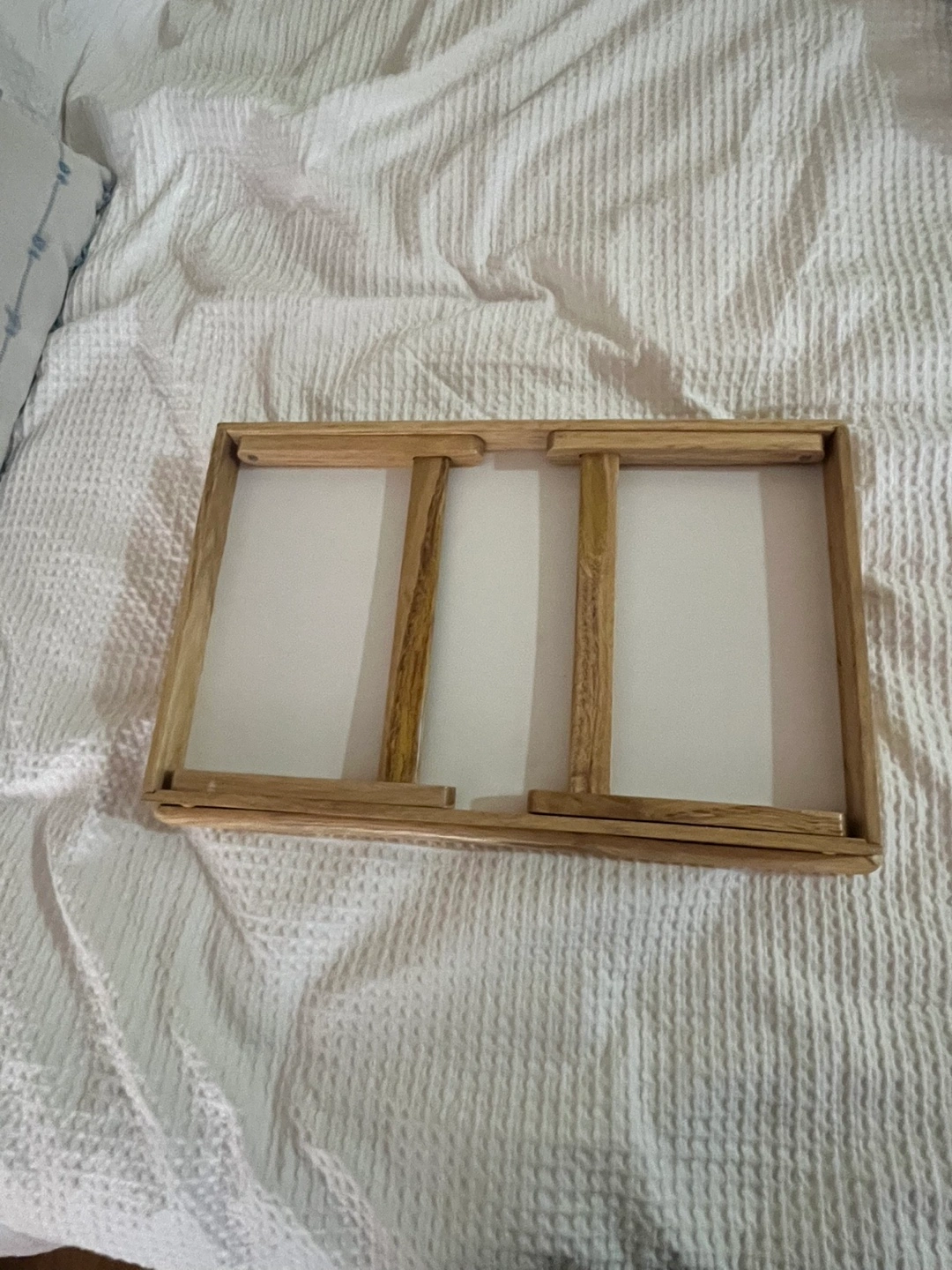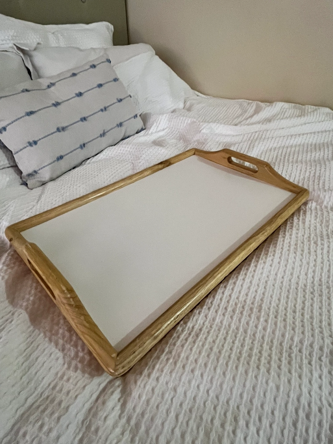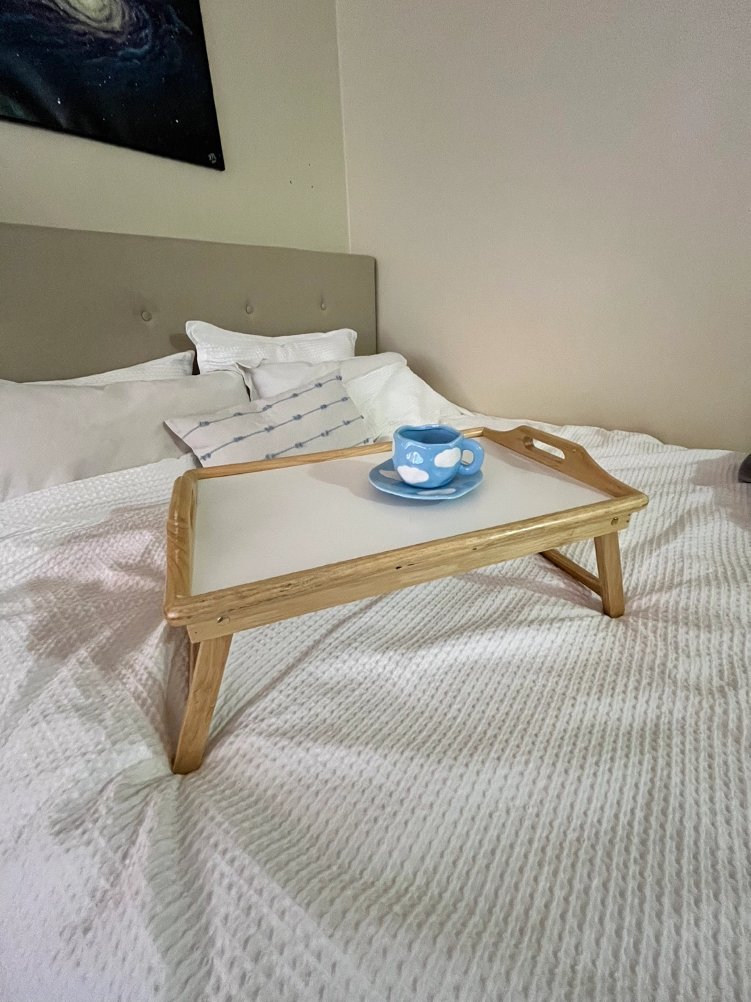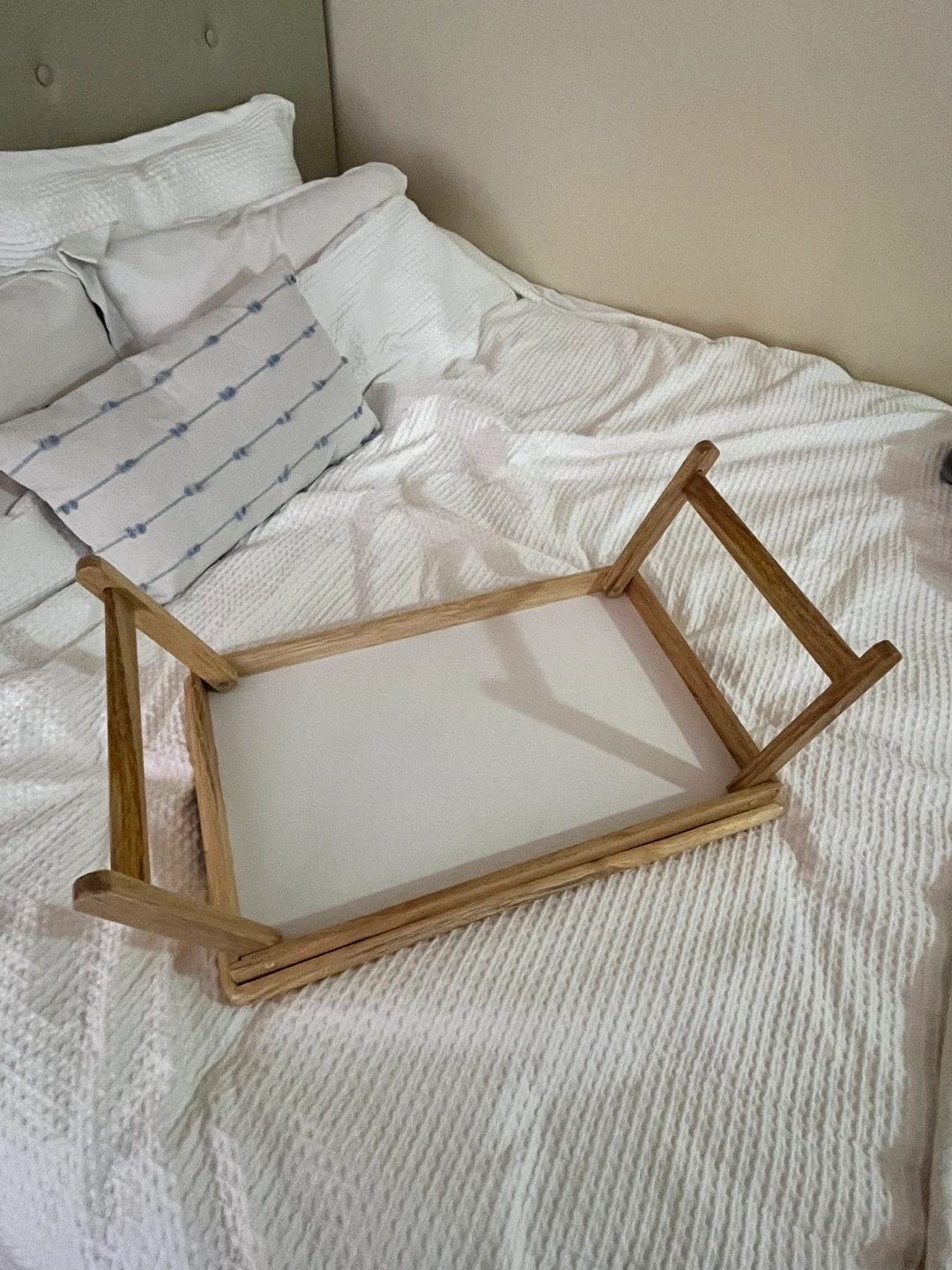 Portable wooden tray, perfect for breakfast in bed, working on a laptop, or bring it to the park for picnics! Features a white surface and foldable legs for easy storage. 22in L x 14 in W. Sits 8.5 in off the ground. FOR PICKUP: near King St West and Jameson Avenue in Parkdale. My exact address is only given for confirmed pickups.