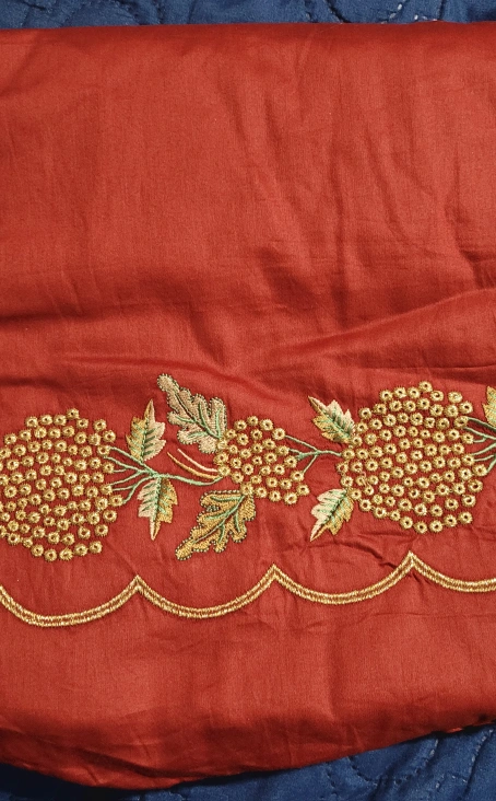 Gorgeous maroon fabric. Intricate gold embroidery. Includes matching plain fabric and patterned fabric. Perfect for creating a stunning outfit.
