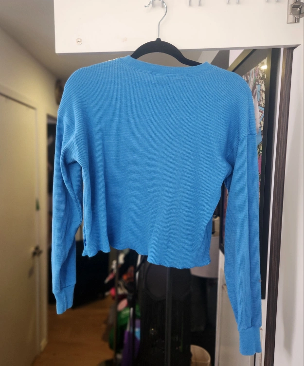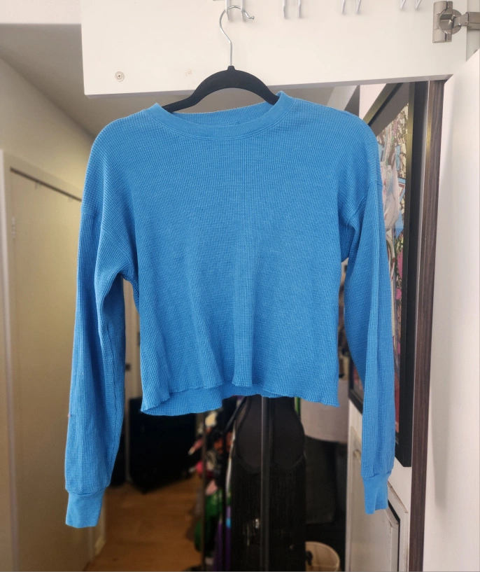 Cute cropped long sleeve waffle knit top. Size XS. Made in Cambodia. Excellent Like New condition.