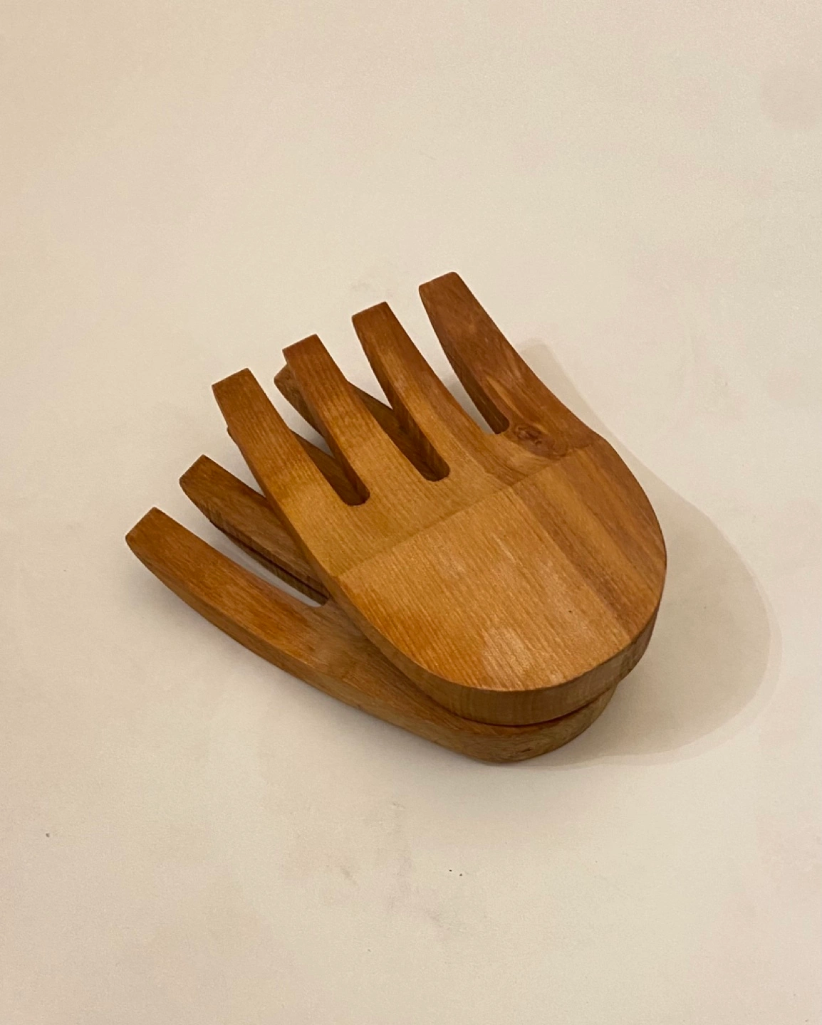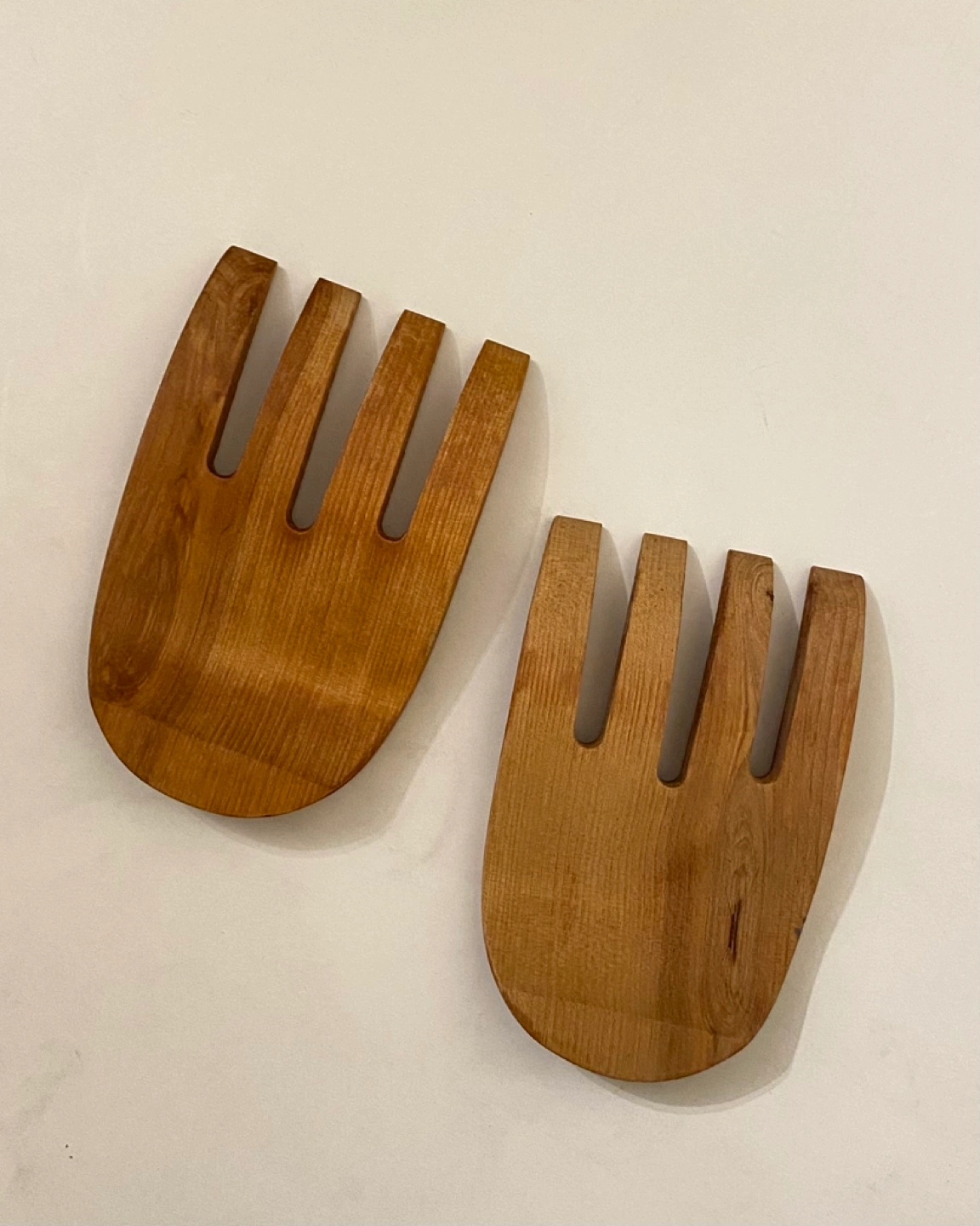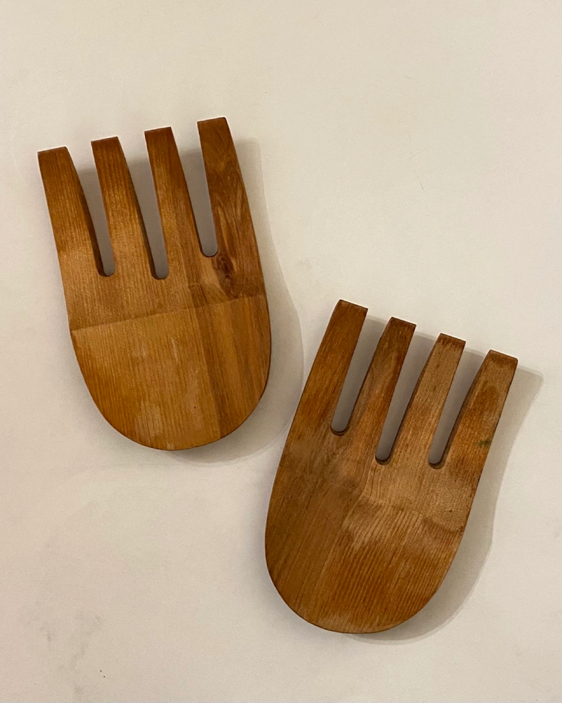 Pair of wooden salad servers. Natural wood finish. Great for serving salads and other dishes.