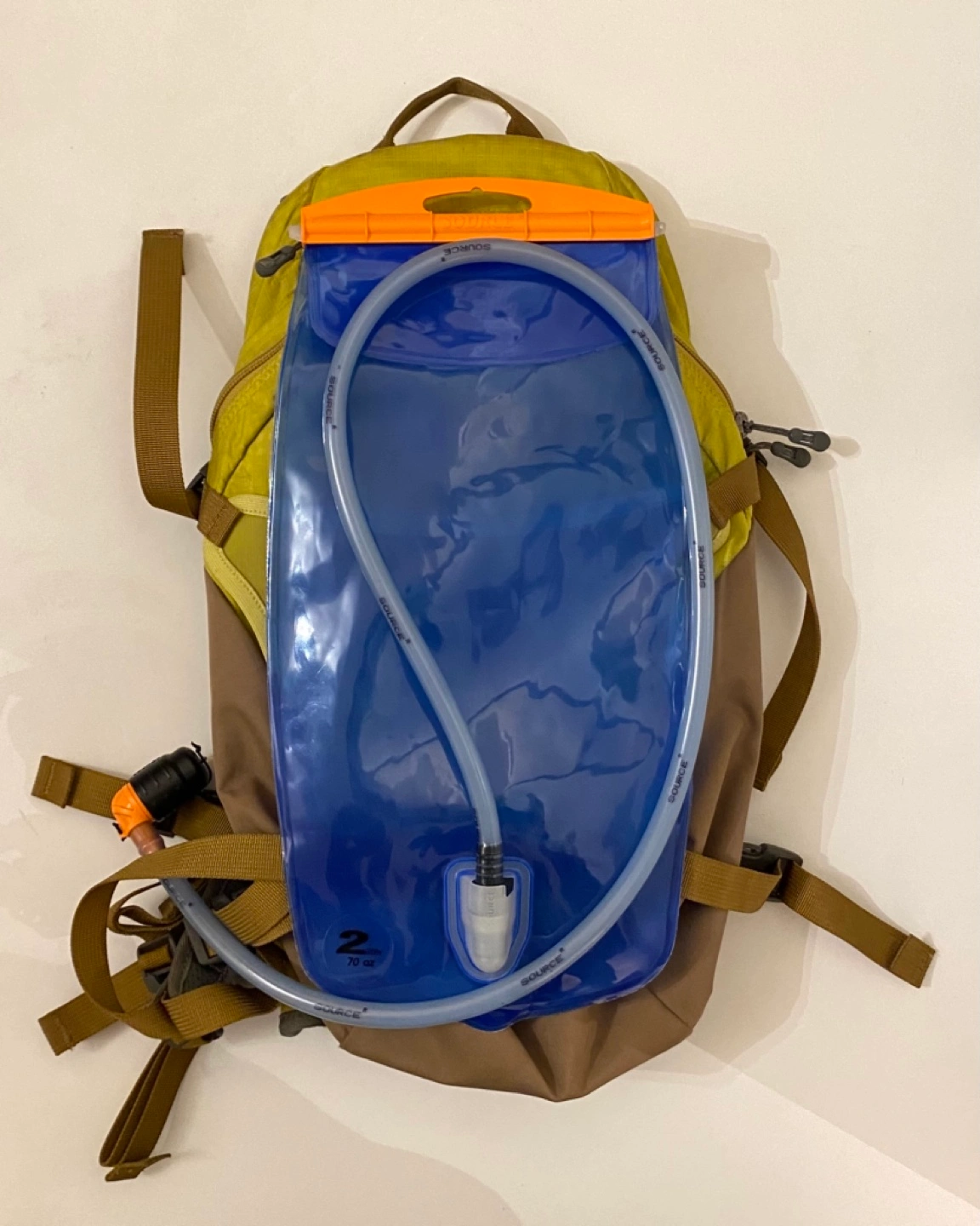 Used MEC hydration pack. 2L reservoir included. Adjustable straps. Great for hiking or cycling.