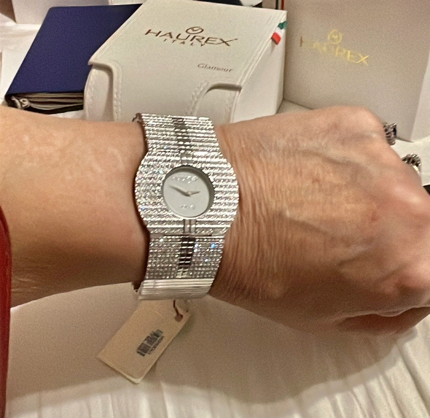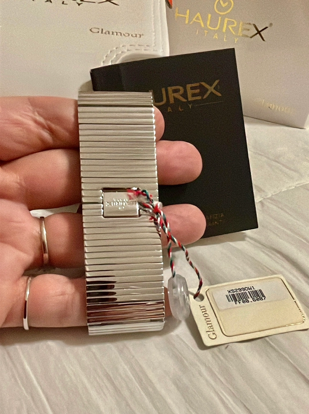 Original Price shown on box $1,075.00 Stunning Haurex Honey watch made in Italy. Glamour line. With Glimmering Genuine Crystals on a stainless steel band. Comes in original boxes, bag & booklet. Selling way below my cost value. BC1272058