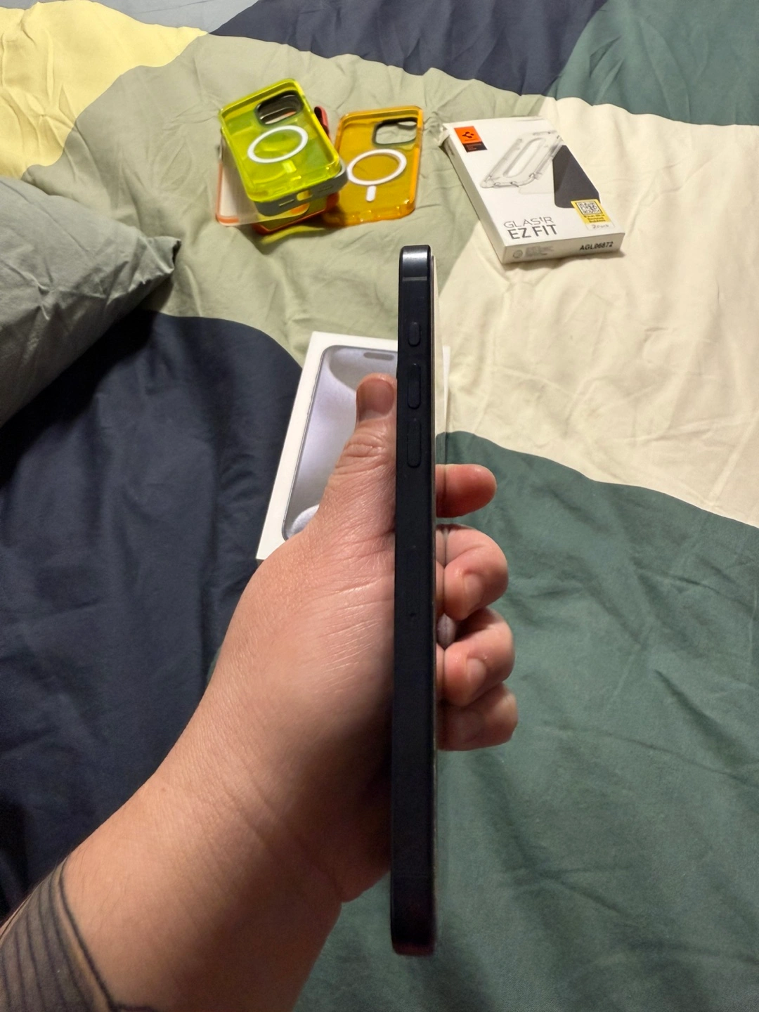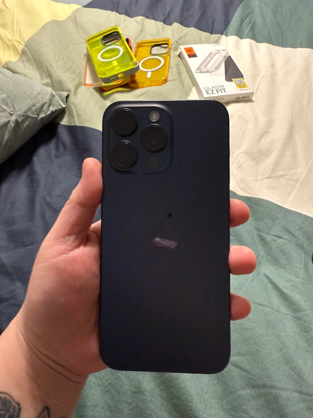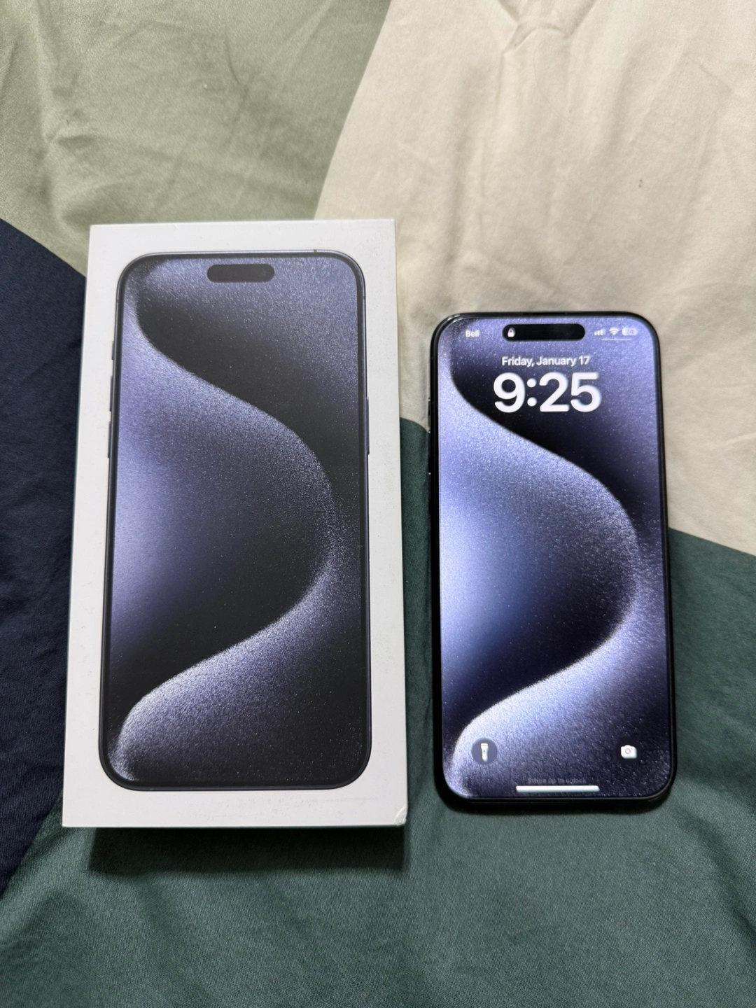 Selling a barely used iPhone 15 pro max. Blue Titanium colour, 256 GB storage. Includes original box and accessories. Excellent condition.