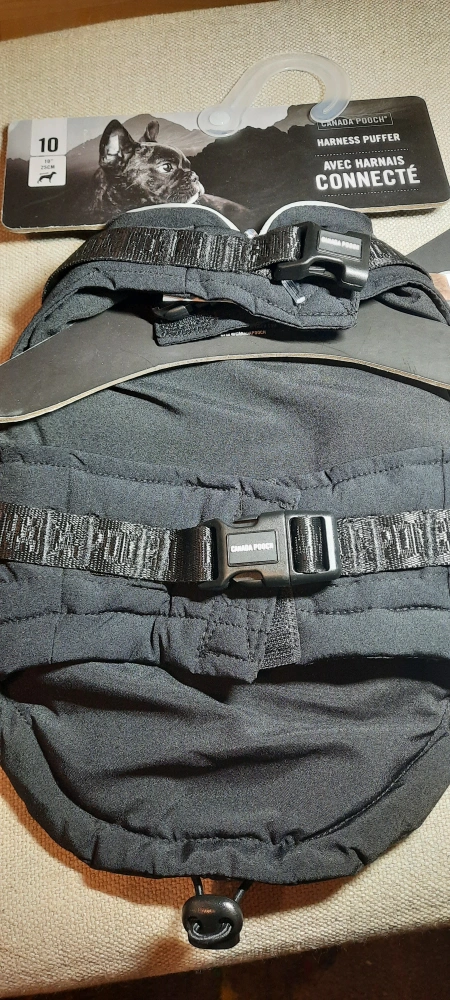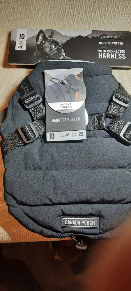 Brand new Canada Pooch Black dog harness puffer jacket. Size 10, fits 2-4kg dogs. Includes leash attachments. Cleaning out my dogs closet... got this for him as a puppy but he is fully grown. Retails for $70+ at Rens. https://www.renspets.com/products/canada-pooch-the-harness-puffer-black?size=10