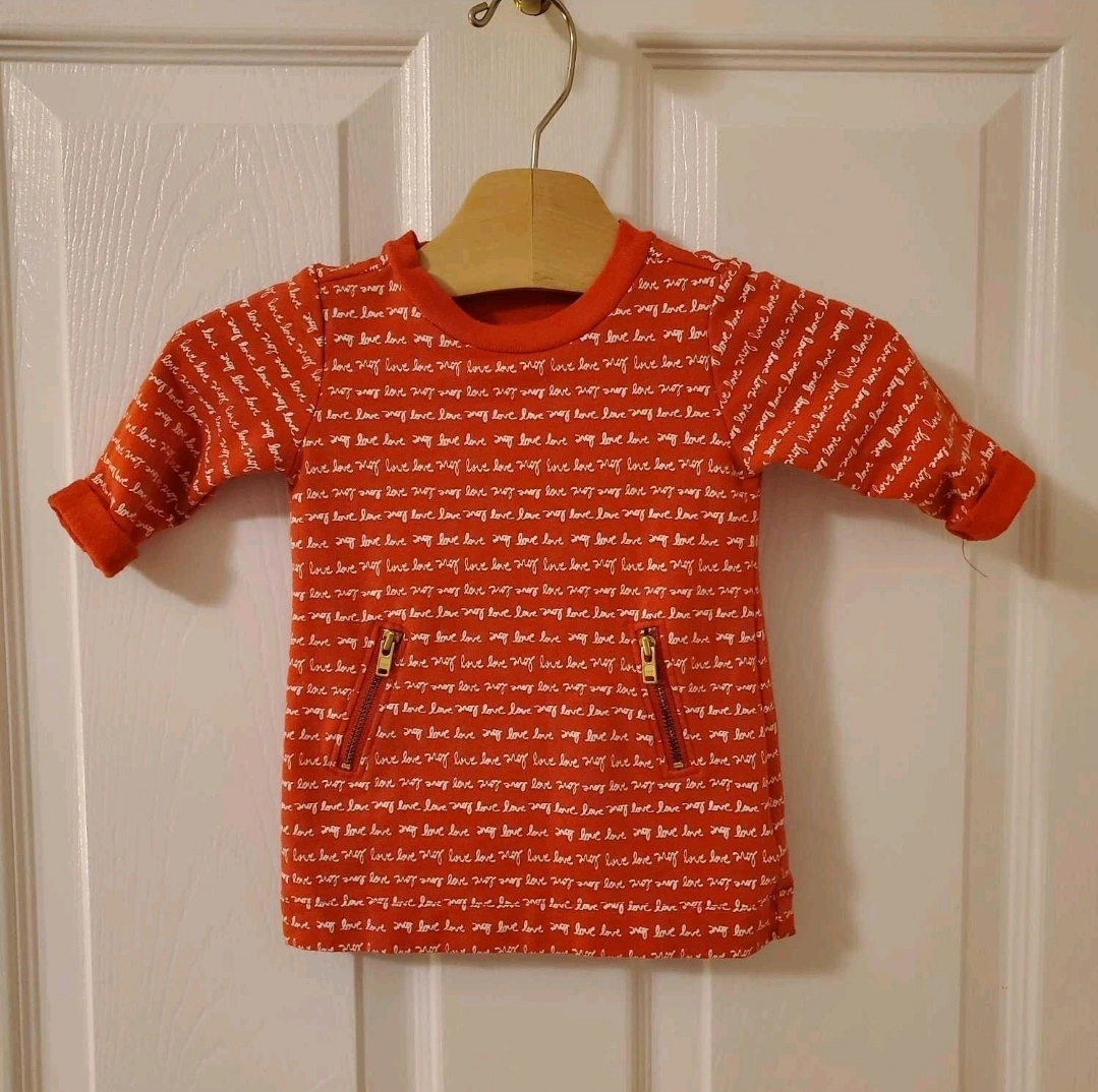 Long sleeve, knee-length dress. Features a repeating "I love" print and two gold zippers on the side. Perfect for Valentine's Day Like new condition Old Navy 0-3 months Pick up in Stouffville or Markham. Cross listed. Fastest pick up preferred. No holds.
