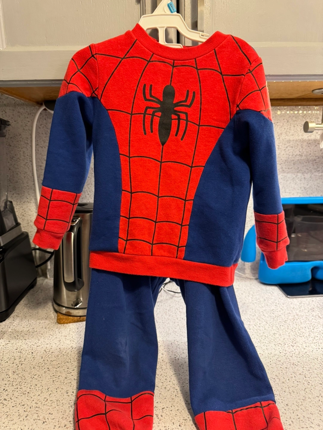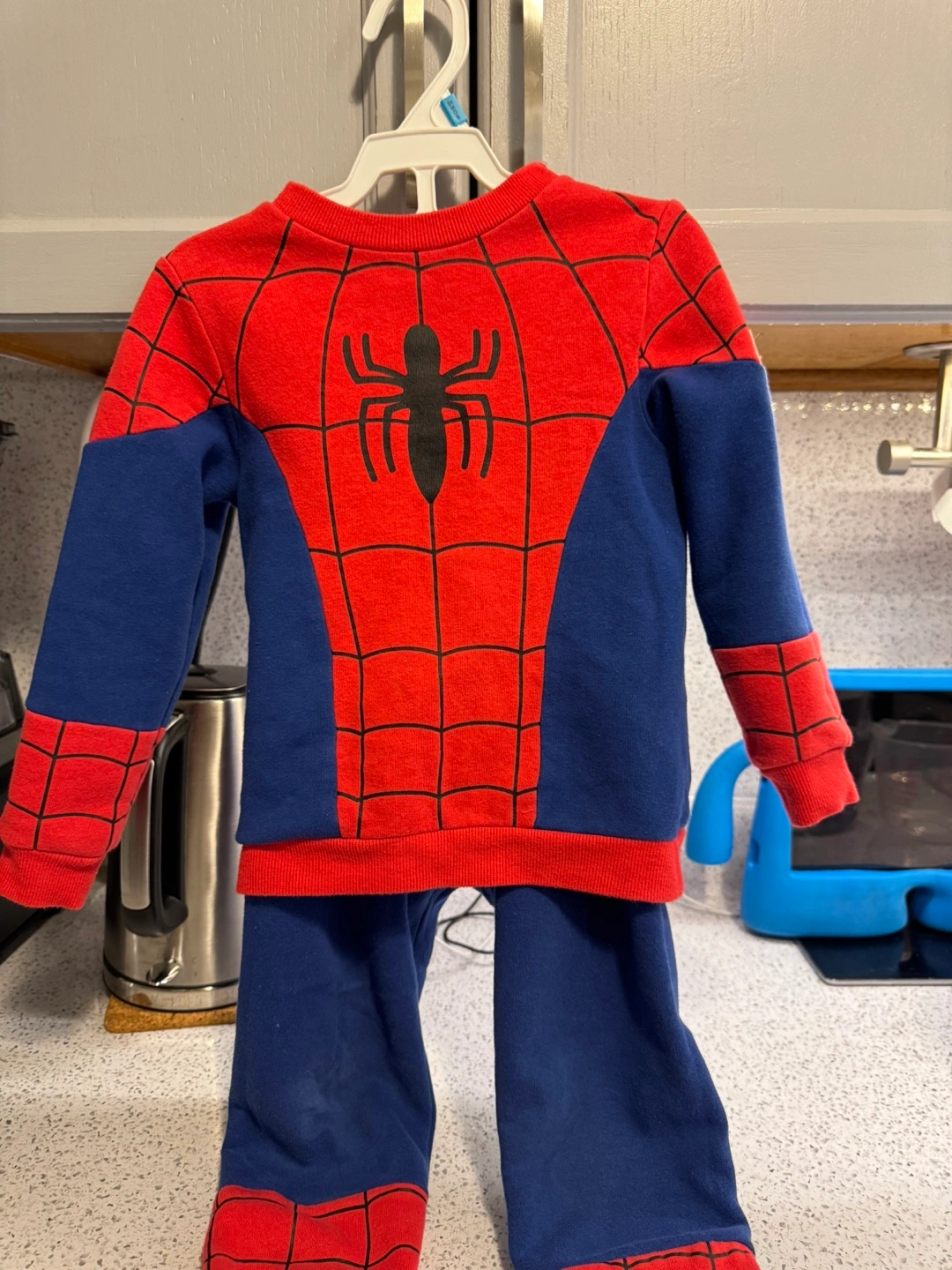 Adorable Spider-Man sweater set . Blue and red. Long sleeve shirt and pants. Perfect for your little superhero. Size 2-3 yeas old, marvel