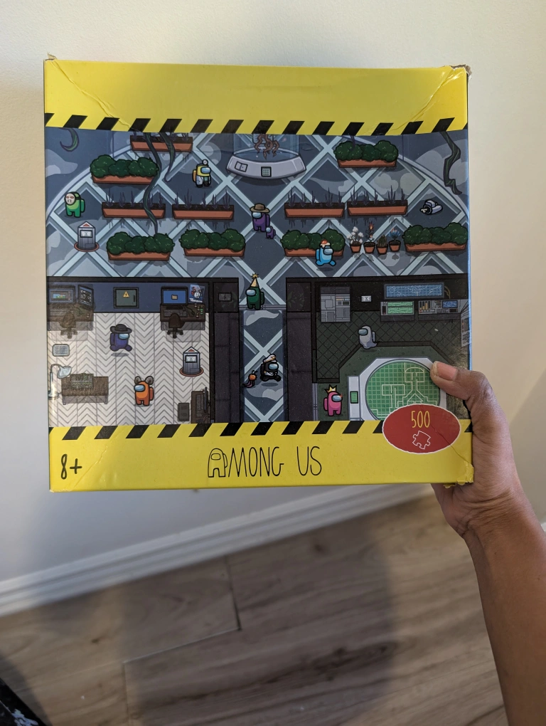 500-piece jigsaw puzzle. Features Among Us characters and locations. Recommended for ages 8+