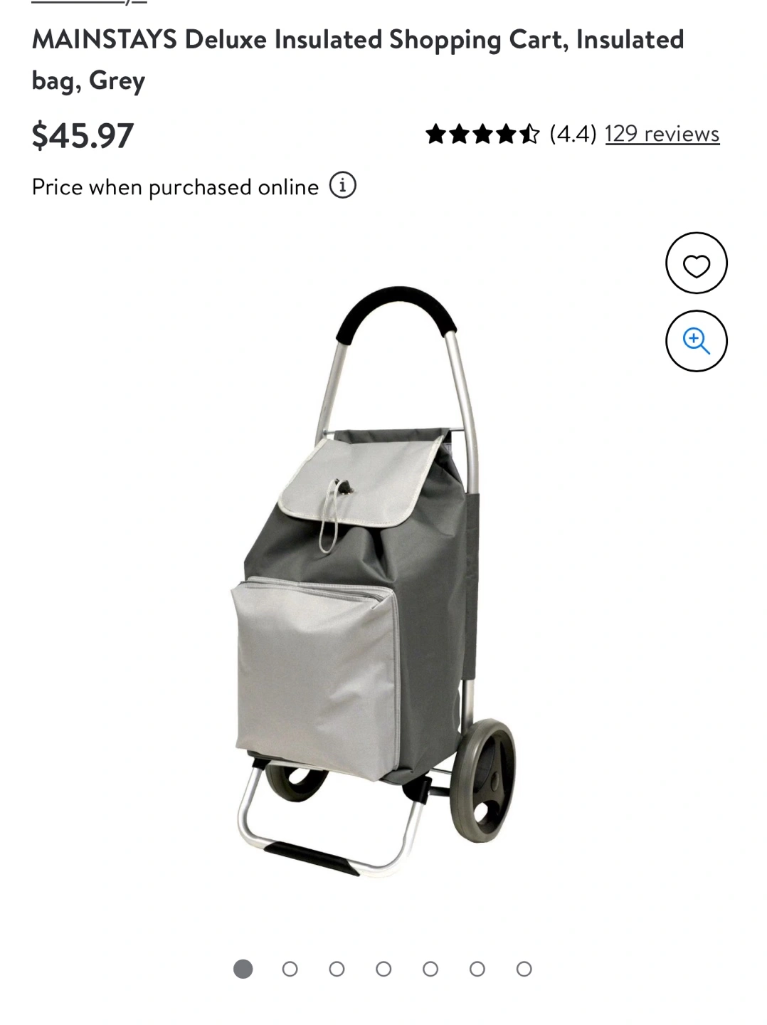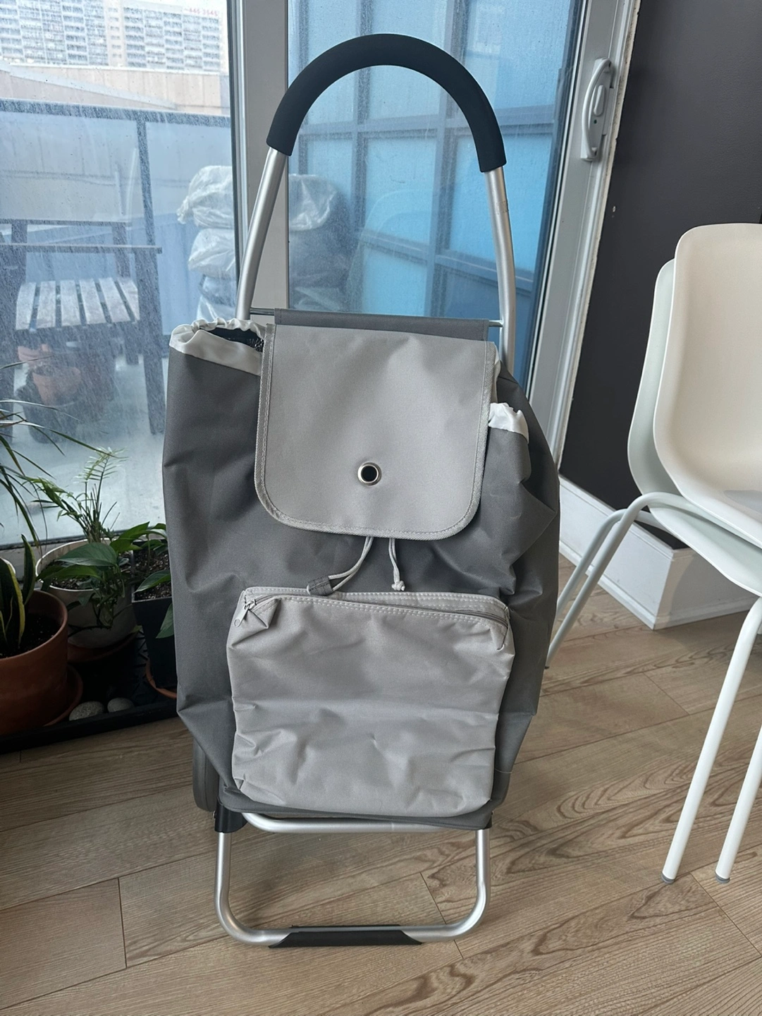Grey insulated shopping cart. Features a foldable design, convenient handle, and multiple pockets. Ideal for groceries or other shopping needs. Like new, very rarely used. Pickup only .