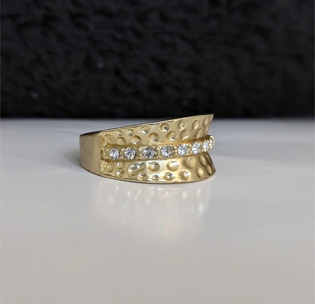 NEW ✨ CZ Stones Gold Finish Hammered Cocktail Ring 💰 Great Condition ✨ Vintage & never worn Round cubic zirconia Finished in premium gold tone over brass Size 10.75 Nicely packaged 🎁