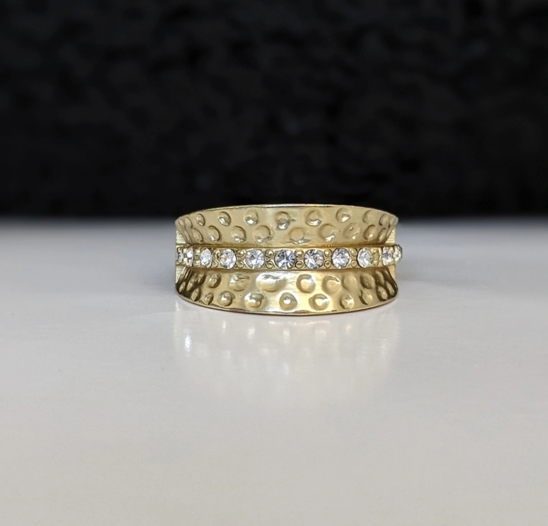NEW ✨ CZ Stones Gold Finish Hammered Cocktail Ring