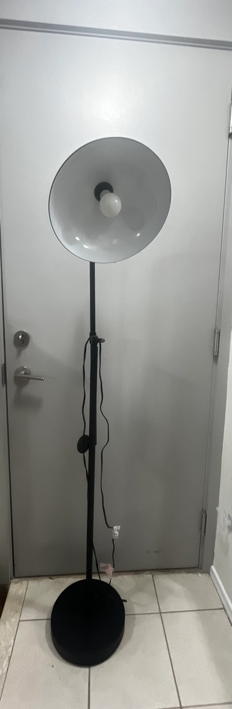 Black metal floor lamp. Adjustable arm and shade. Excellent condition. Great for reading or ambient lighting. I am selling a black metal floor lamp in good condition, regular price $80, I am selling it for a low price of $50 not taxes or the best offer Pick up only