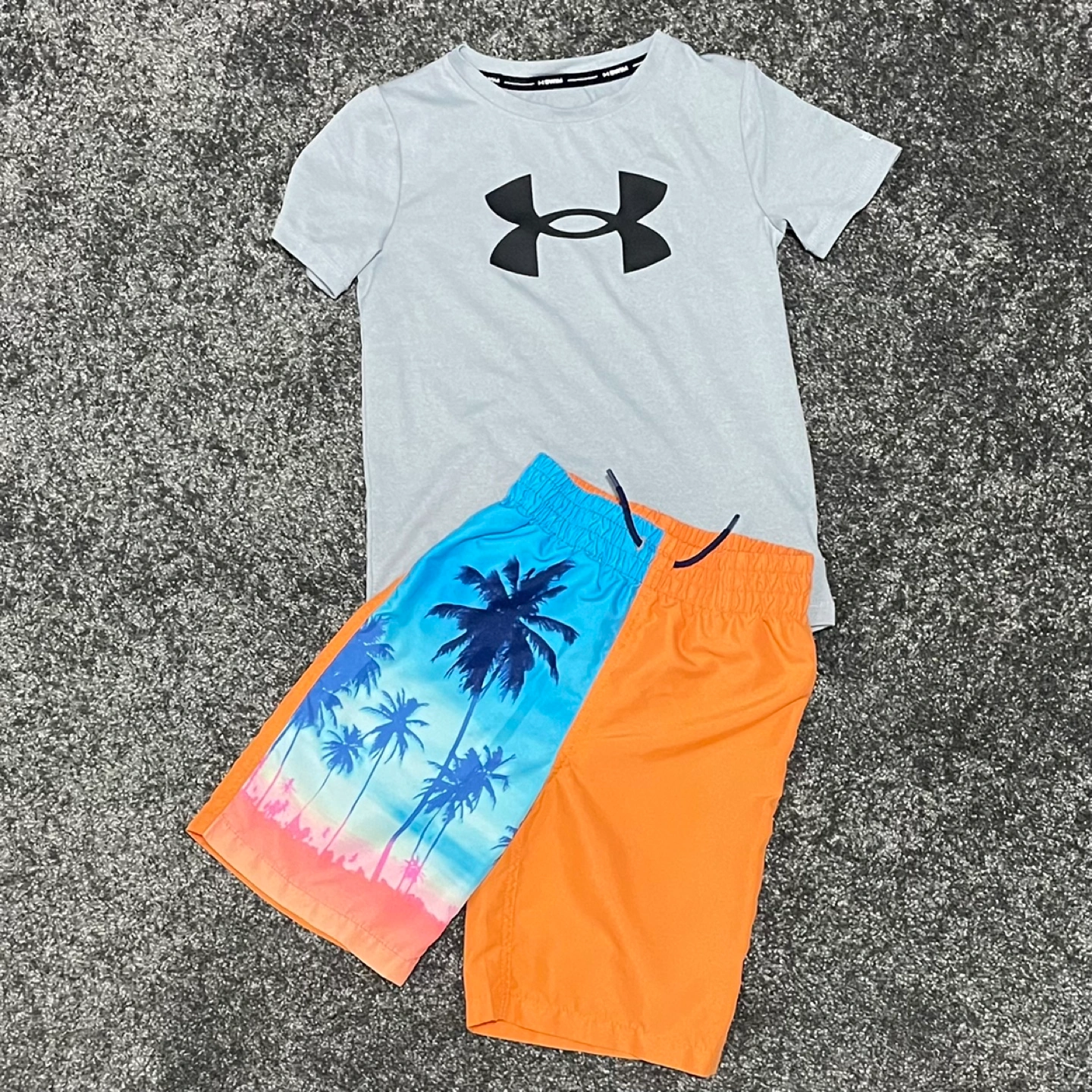 Under Armour Short Sleeve Surf Shirt and Joe Fresh Swimming Trunks Size 6 Please note: There is a small line marked on the back of the shorts. Please see last photo.