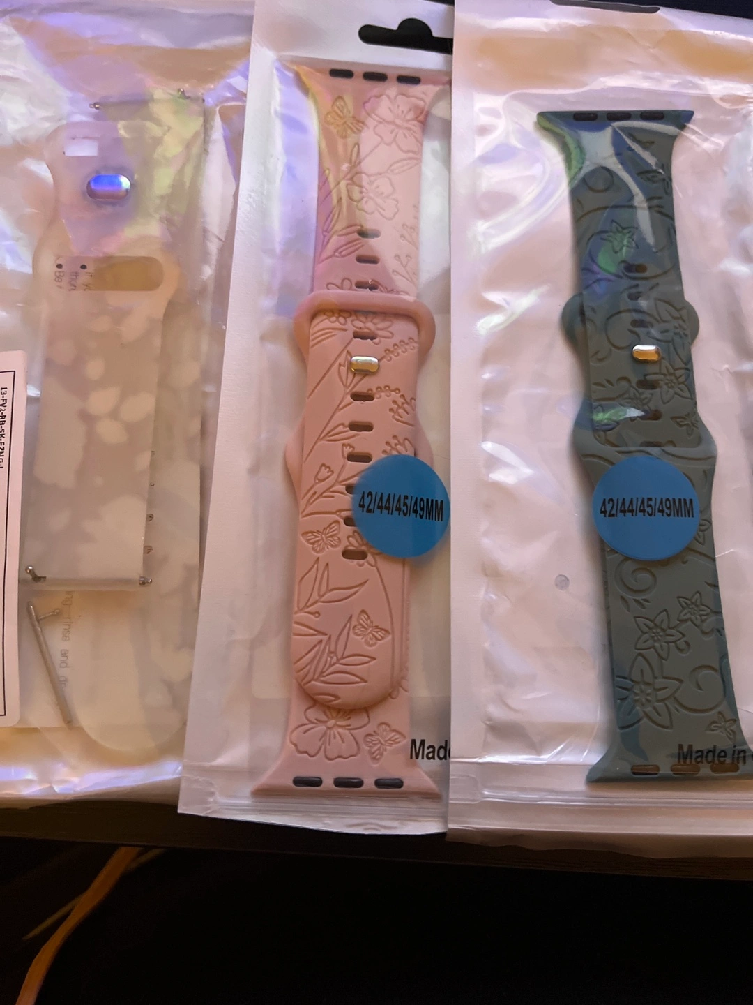 Three silicone Apple Watch bands. Floral design. 42/44/45/49mm size. New.10.00 for 3 bands or 5.00 each