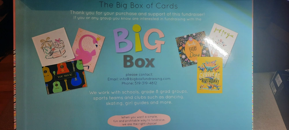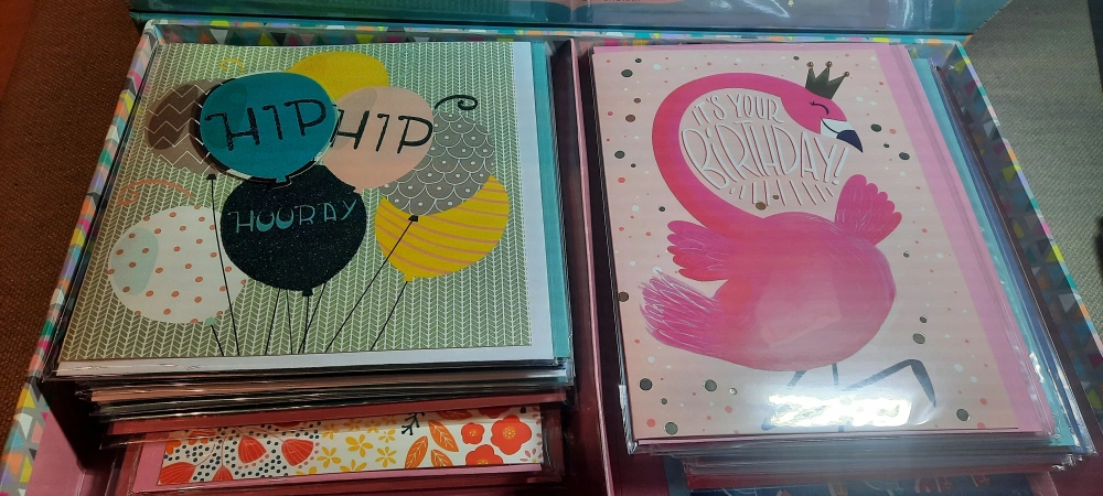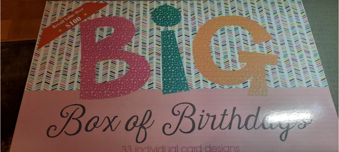 Brand New Big Box of 33 High Quality birthday cards. Various designs, individual wrapped with envelope. Great for fundraising or personal use. Retail value over $100. Only looking for $1ish a card.