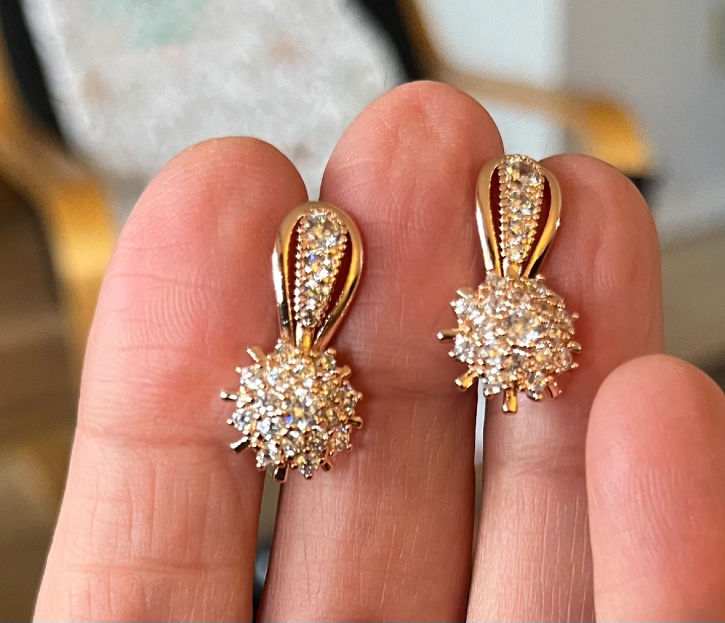 Stunning rose gold earrings. Features a delicate flower design. Set with sparkling cubic zirconia stones. Elegant and eye-catching.