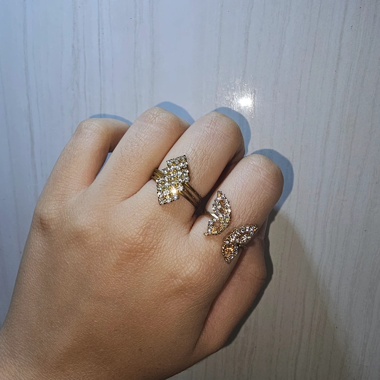 Set of two gold tone rings. One features a rhombus shape and the other a butterfly. Both adorned with clear rhinestones. Adjustable sizing. ‼️These got discolored/ oxidized due to humidity, but still looks lovely‼️ No returns, so buy it mindfully. 😂