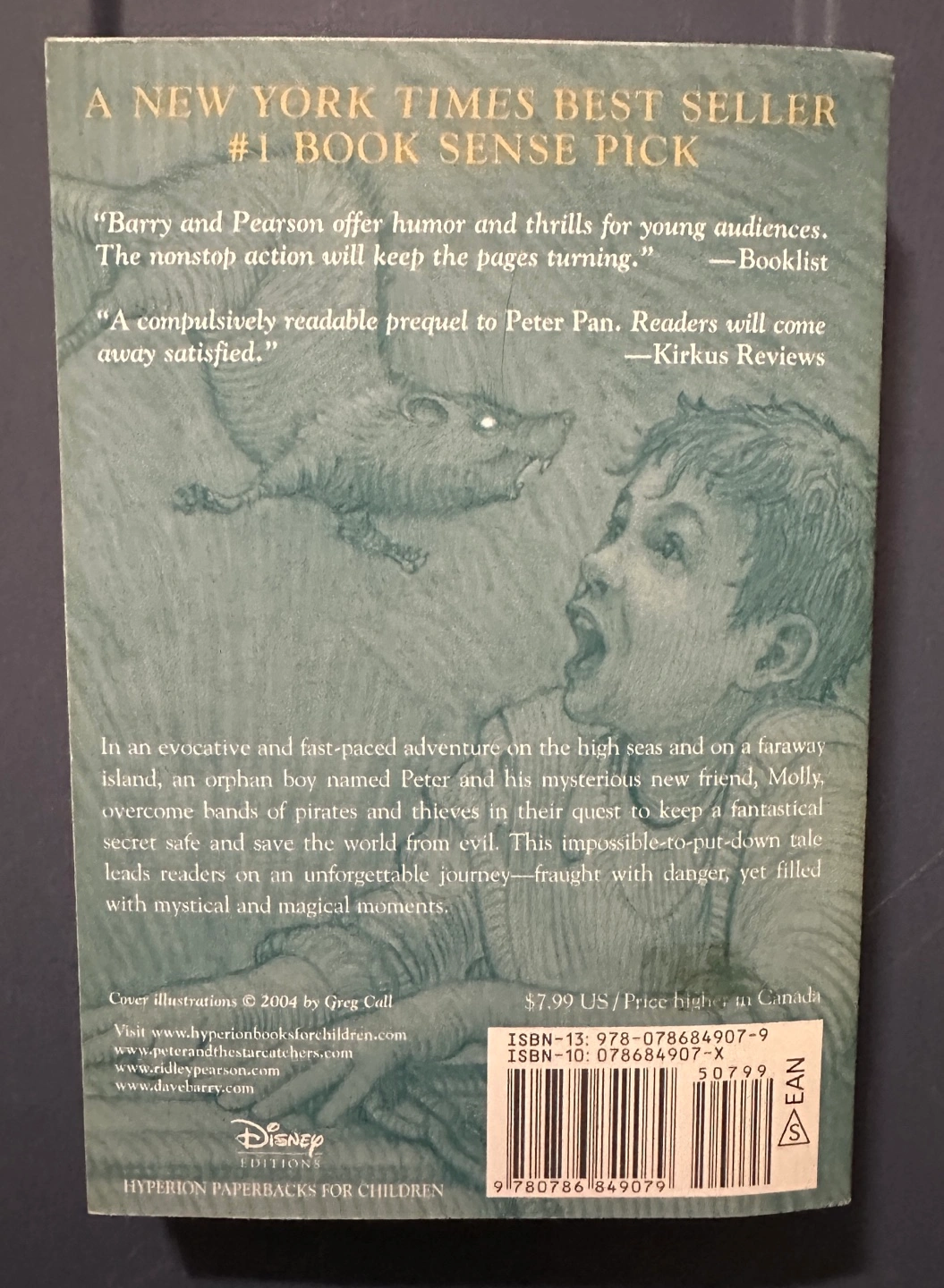 Softcover copy of Peter and the Starcatchers. National bestseller. A prequel to Peter Pan. Written by Dave Barry and Ridley Pearson. Hyperion Paperbacks for Children edition.