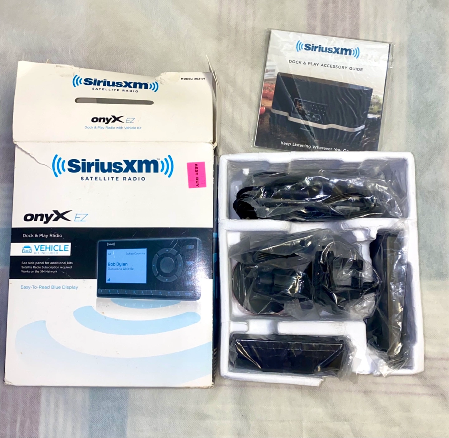 SiriusXM Onyx EZ satellite radio. Dock & Play model. Includes vehicle kit. Easy-to-read blue display. New in box. Never used