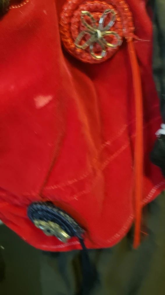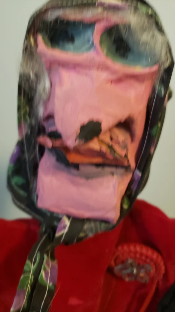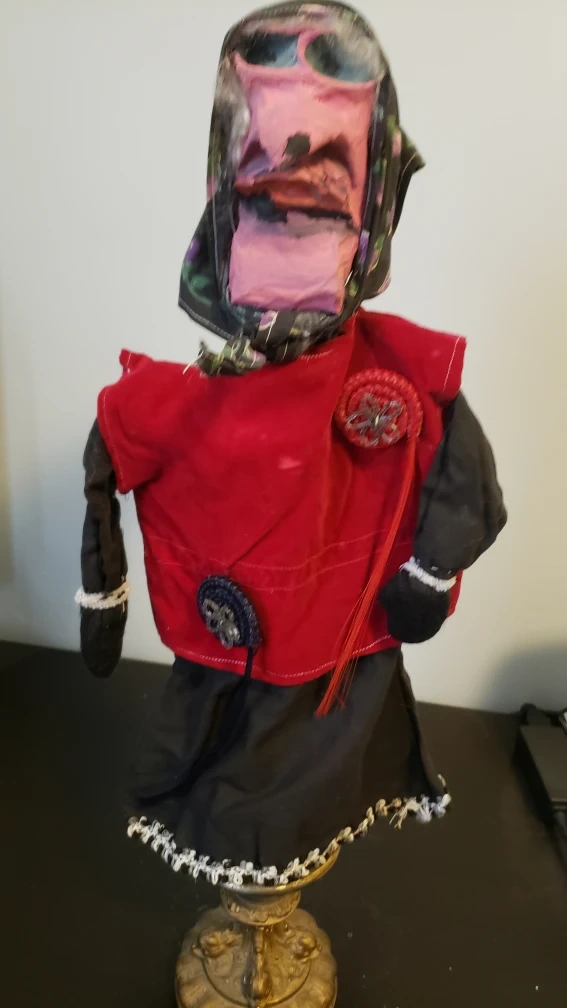 Vintage handcrafted puppet. Features a unique design. Red velvet bodice and blue skirt. Detailed face. Scarf. Great for collectors or theatre enthusiasts. others are posted. please check out