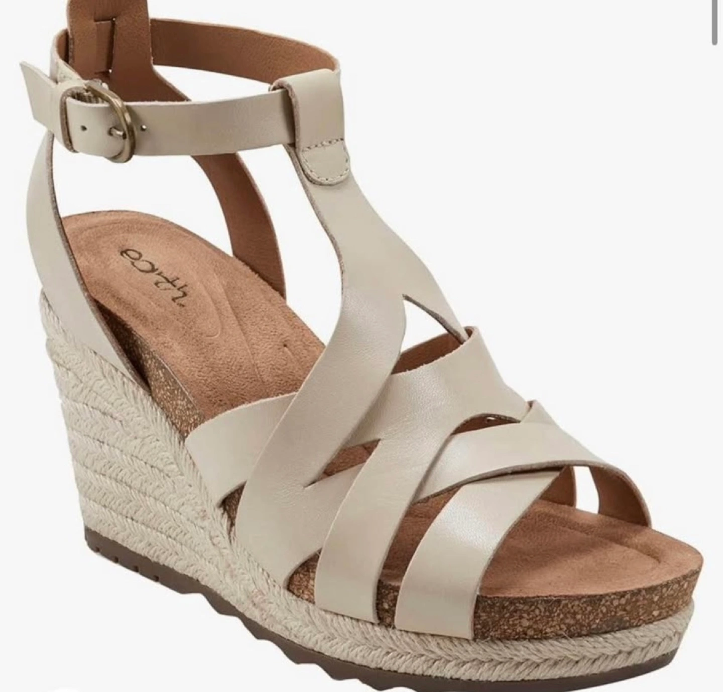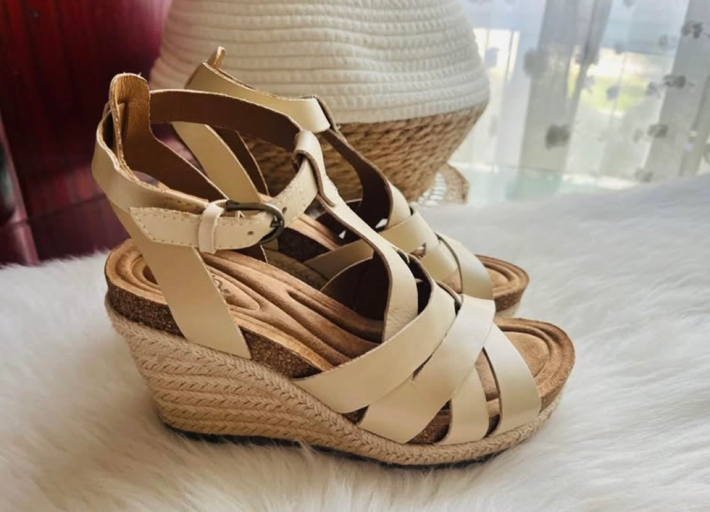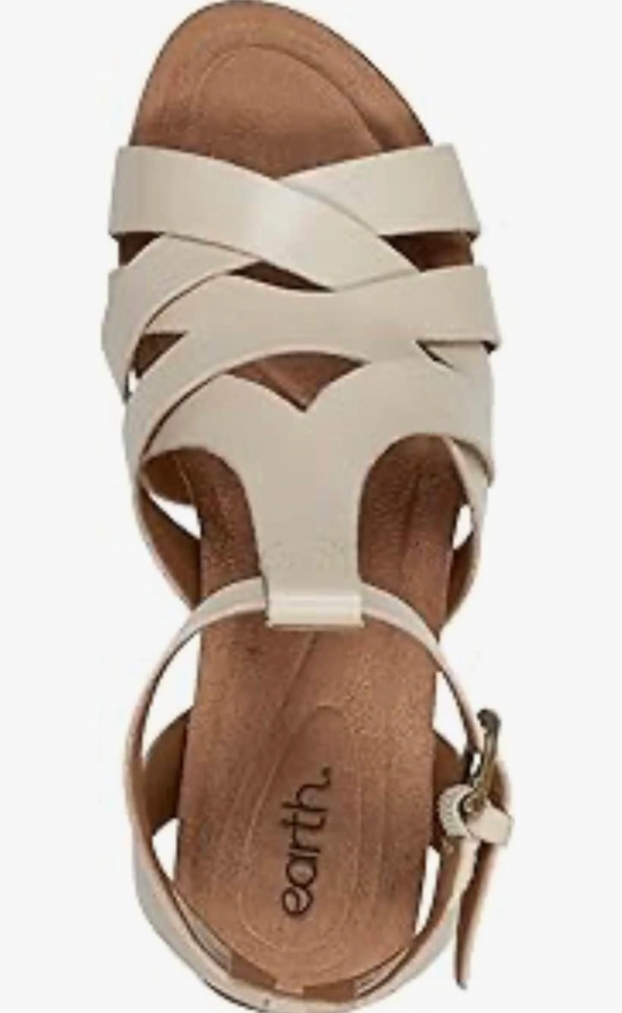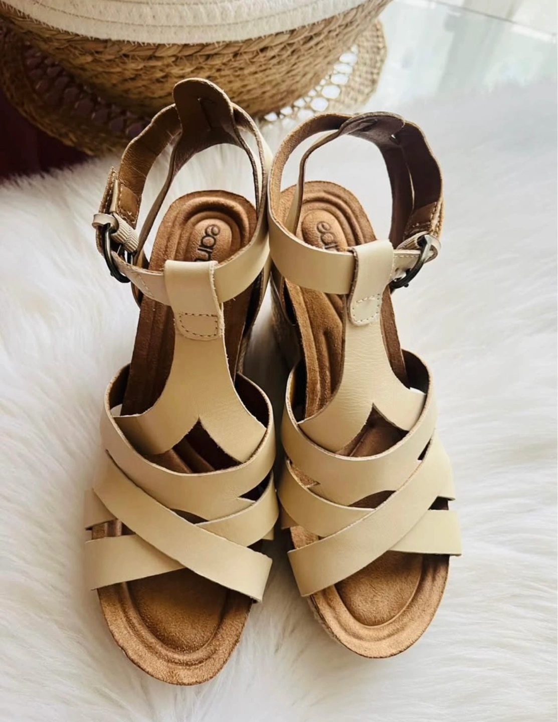 Brand new, never worn High end Earth sandals Style is MALERA Ivory Leather Sole is a cushioned suede that’s designed to keep your feet stabilize, and dry Wedge heel style Size 6/37 $122 retail Length of sole 8” Width of sole at ball of foot 3” PU Ottawa & Westmount, Kitchener