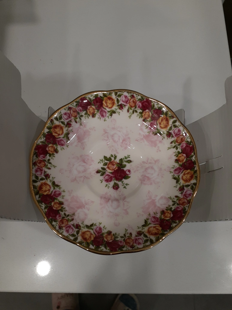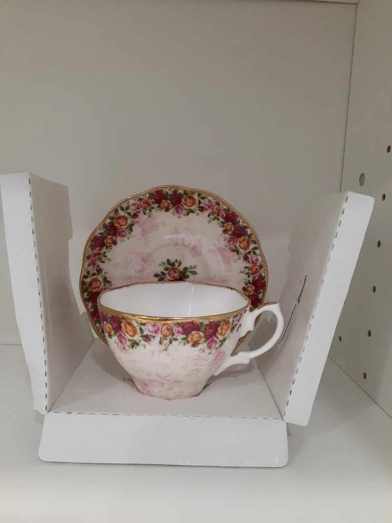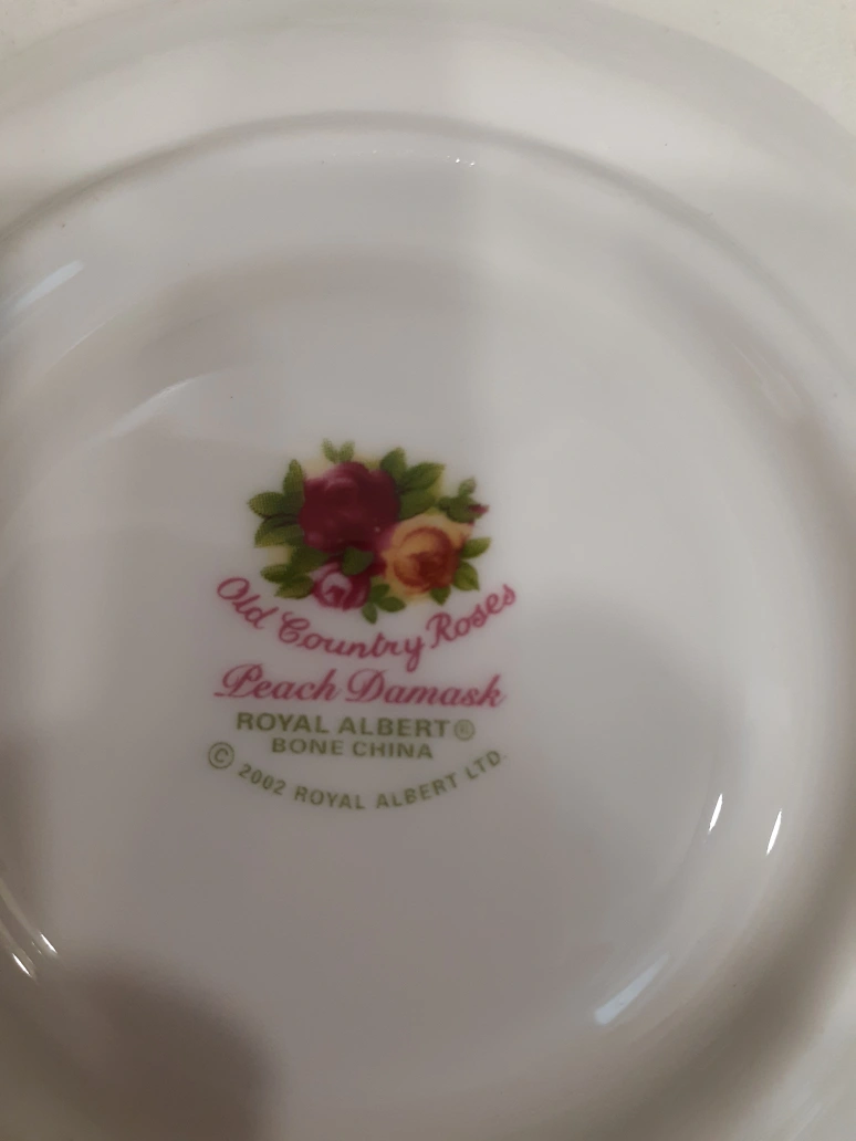 Available! Royal Albert Old Country Roses Peach Damask teacup and saucer. Bone china. New in box. Cash and Porch Pickup in North York close to Willowdale middle school OR NorthYork Centre Station/ Empress Walk.
