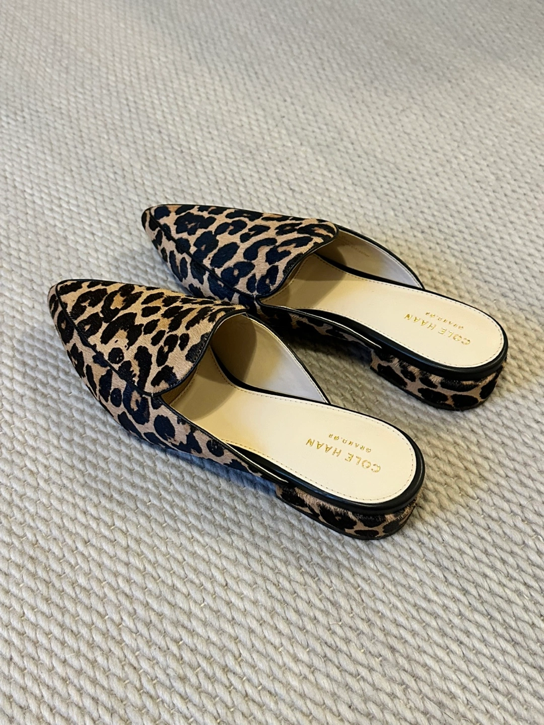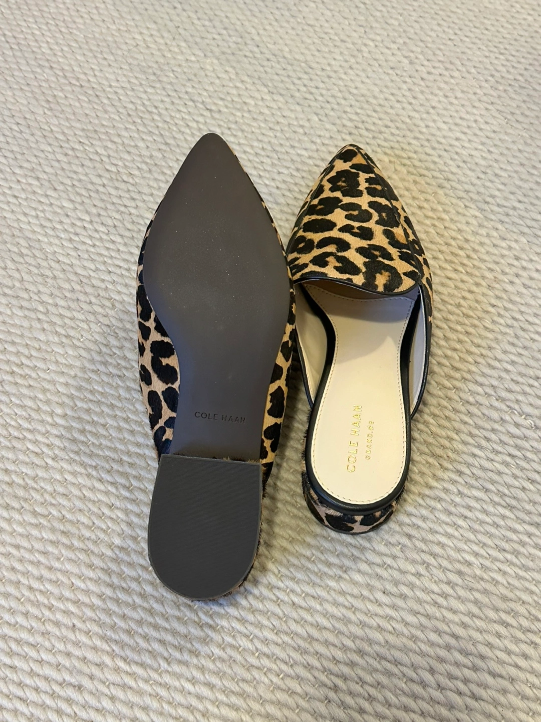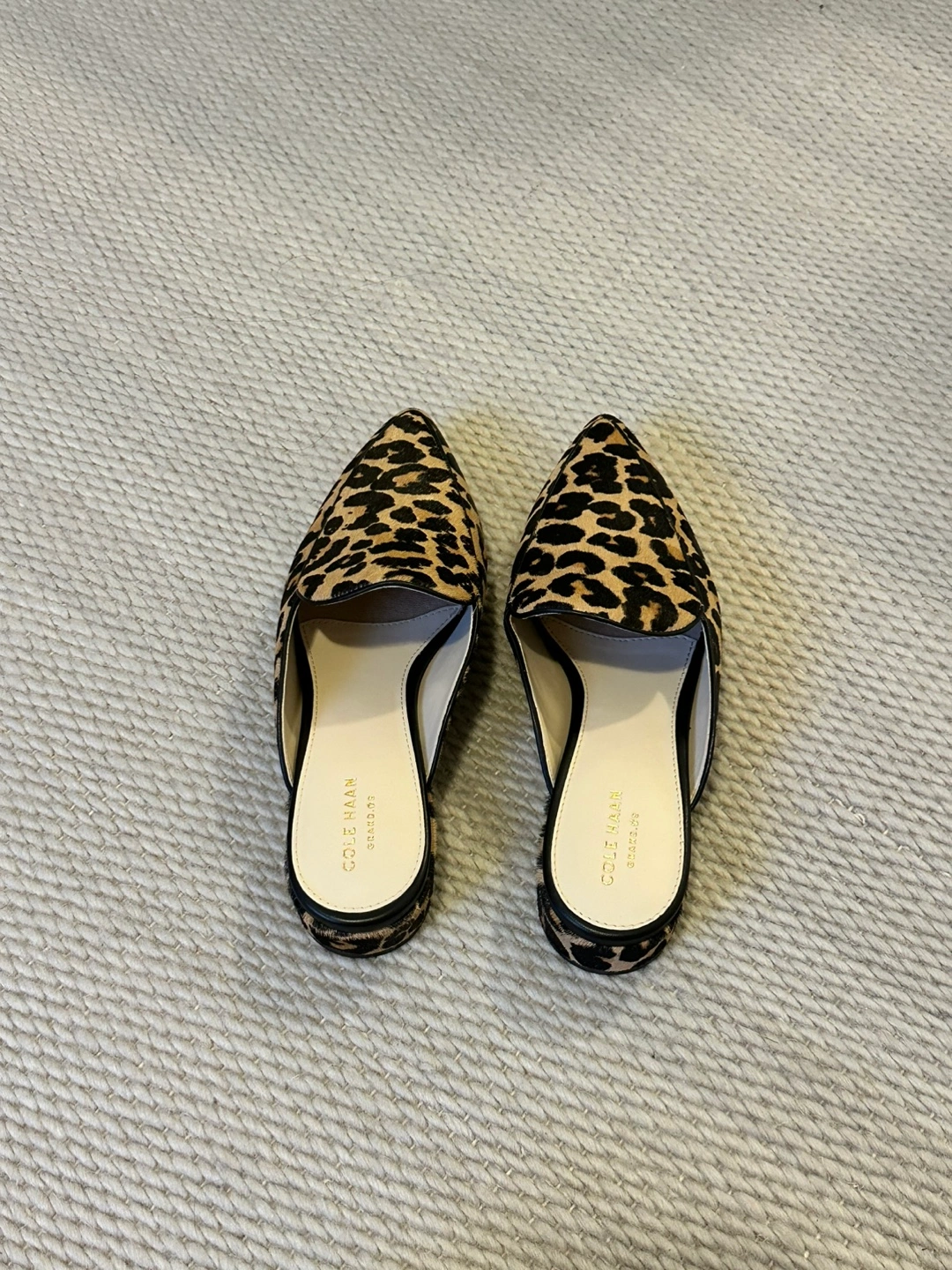 “Piper” leopard print mules by Cole Haan Features: Never worn • Low block heel • Rubber sole Fabric content & care advice: Real fur (calf hair) • Lining: Leather ✨From a pet-free & smoke-free home✨ Cash only. Pick up at Lawrence Allen Mall