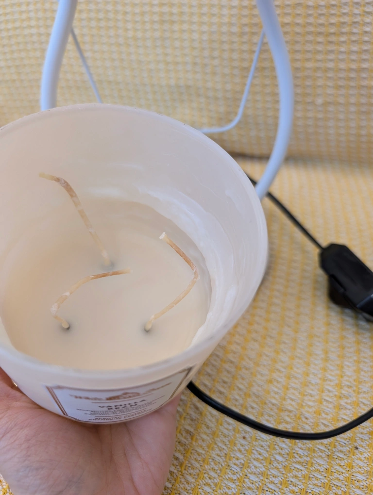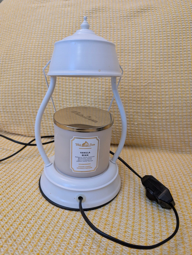White electric candle warmer with adjustable temperature and fragrance No bulb. Includes 2 used candles. ๐ Moving Sale!!! Check my profile listings to see more valuable items โ Only pick up - near Metrotown/Royal oak station