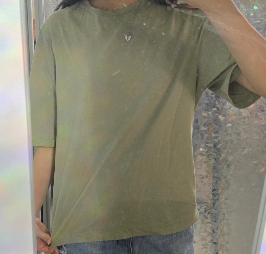 Relaxed fit, short sleeves, crew neck. Sage green colour. Size XS. Soft material, comfortable to wear. Price negotiable & open to trades. Delivery possible to most line 1 and line 2 stations.