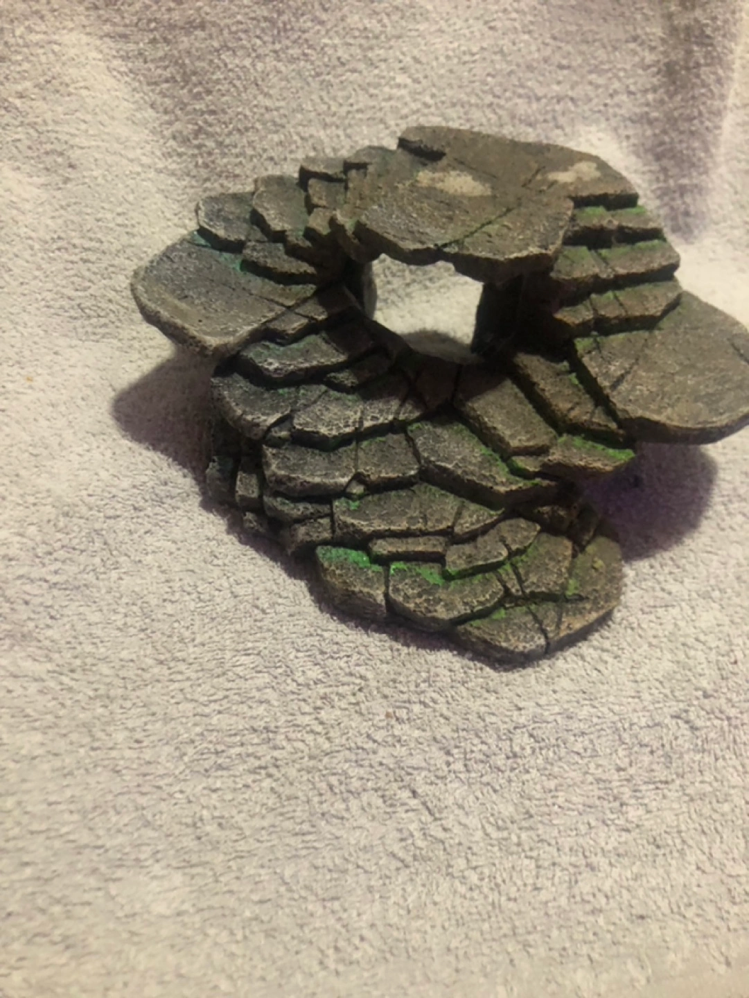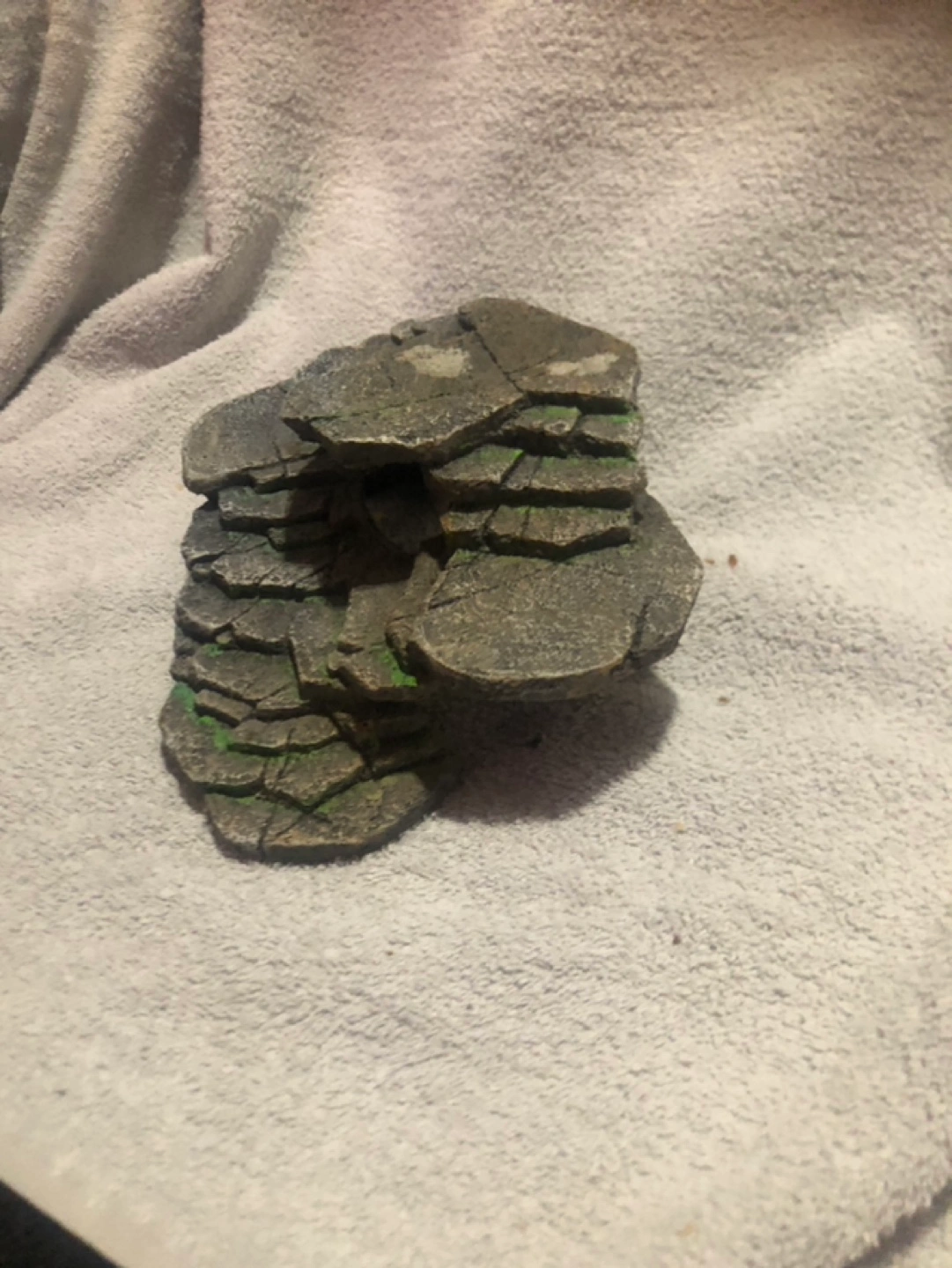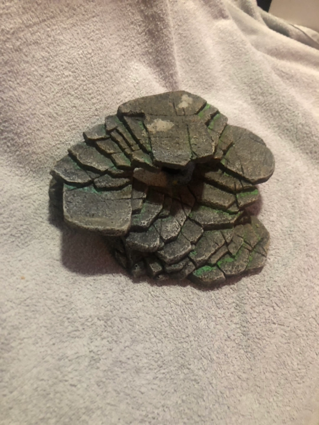 Aquarium, terrarium or enclosure decoration. Perfect for climbing and adding a focal point to your set up! Grey and green resin. Features a tunnel. 3.5 inches tall x 6.5 inches deep x 8.5 inches wide Willing to meet up, drop off, or porch pick up.